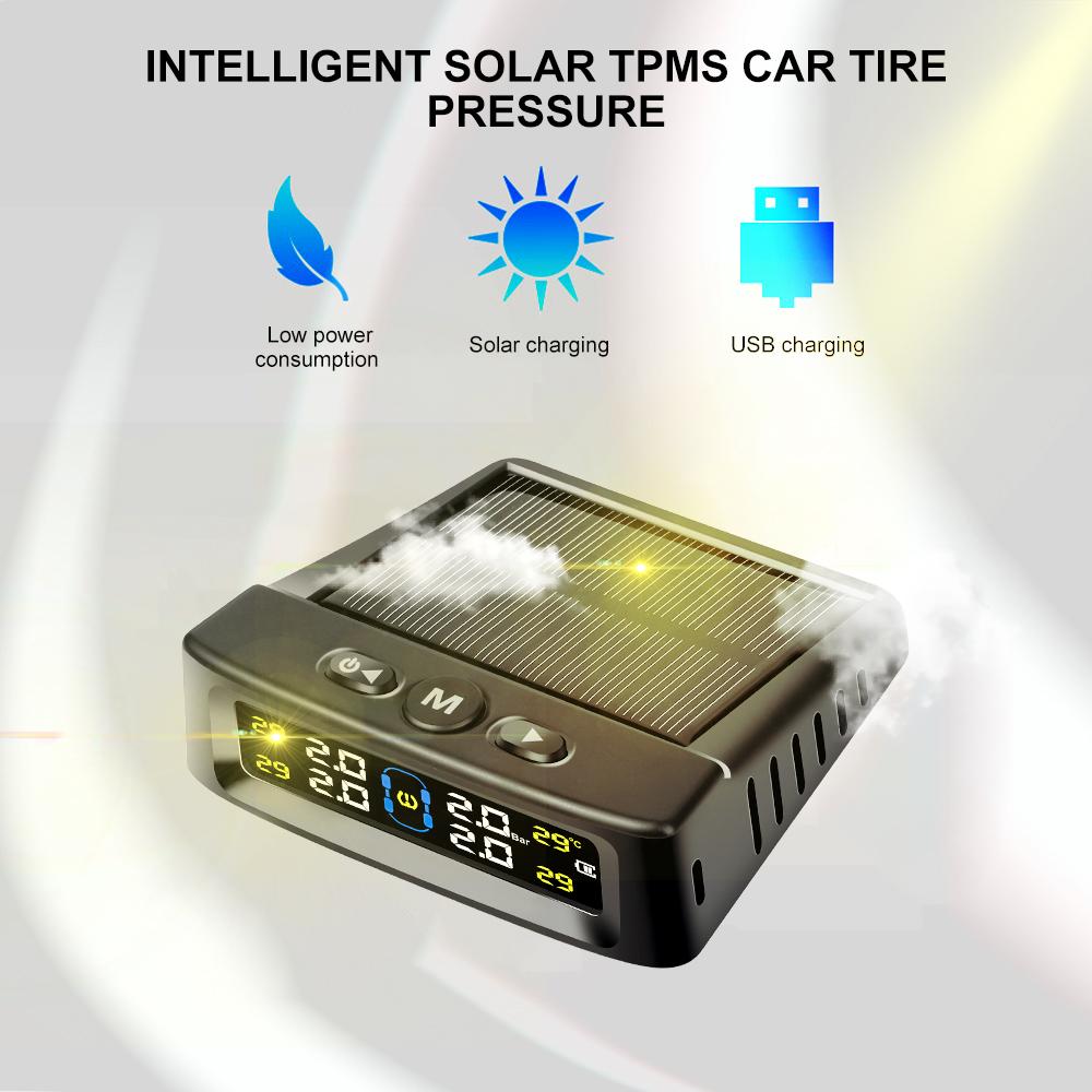 Солнечная энергия TPMS автомобильный монитор давления в шинах интеллектуальная автоматическая охранная сигнализация цифровое предупреждение о давлении в шинах температура