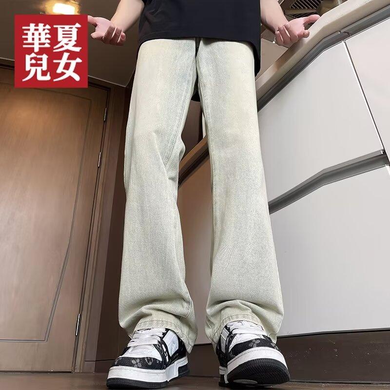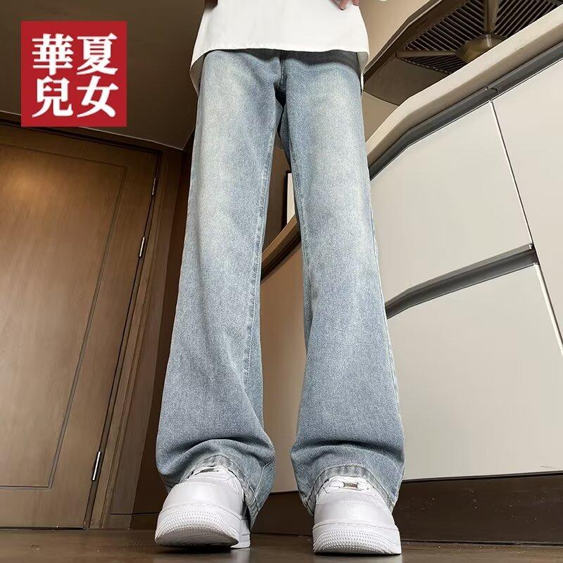 Американские вымытые джинсы из денима, мужские осенние новые свободные прямые брюки-швабры, повседневные широкие джинсовые брюки