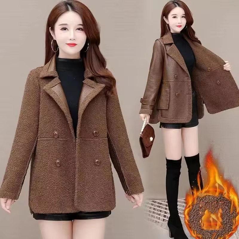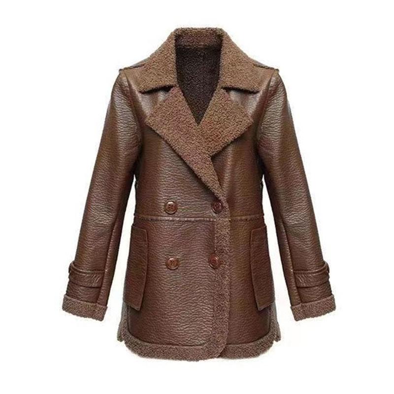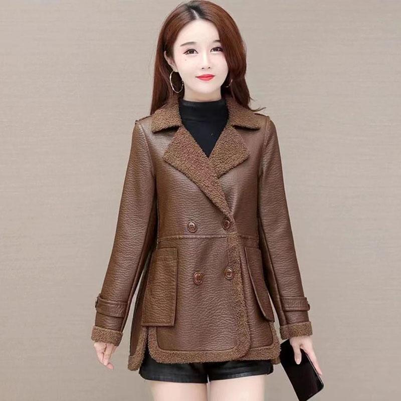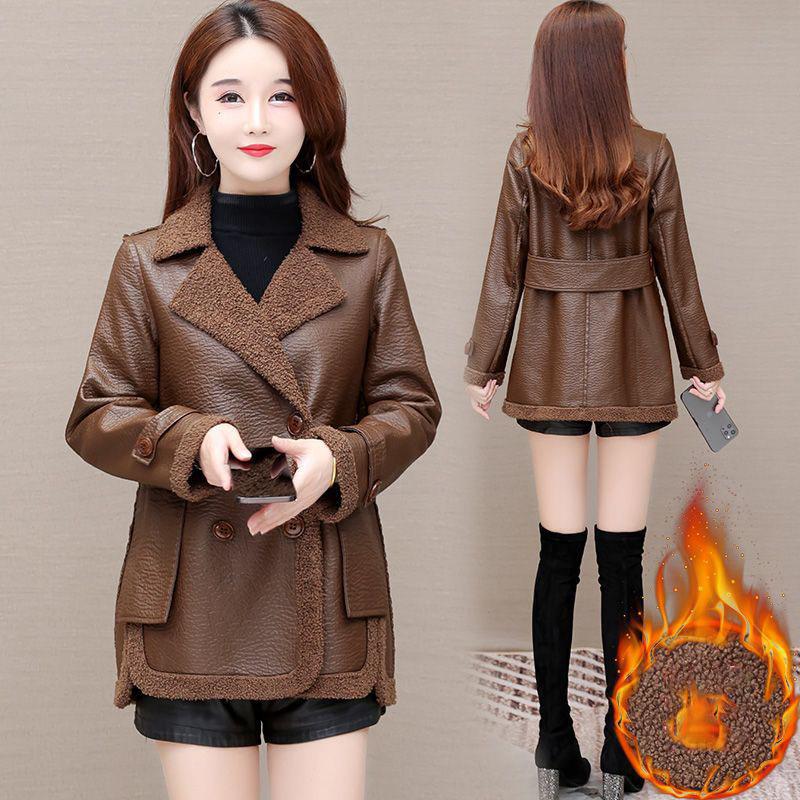 Женская кожаная куртка осень-зима короткая двухсторонняя кожаная куртка 4XL женская теплая бархатная овечья шерсть PU пальто