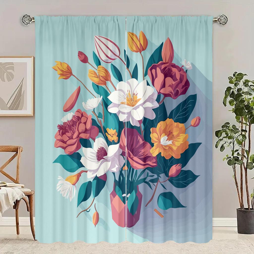 2шт- Цветок - Напечатанная штора - Материал полиэстер - подходит для спальни, гостиной, кабинета, личного пространства