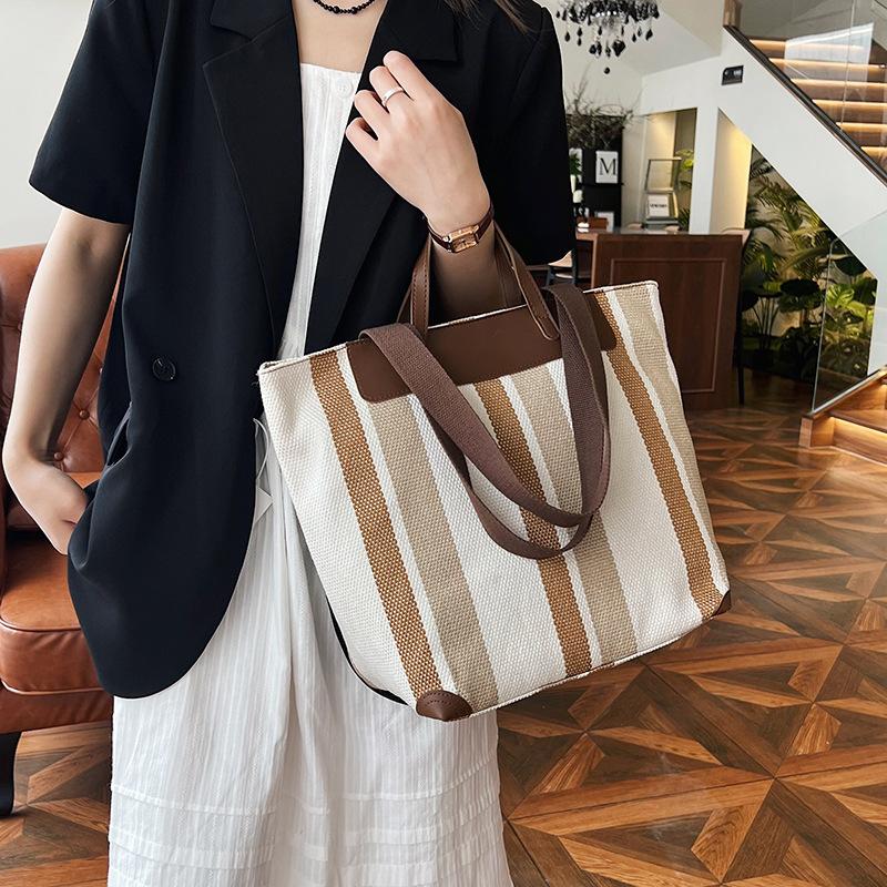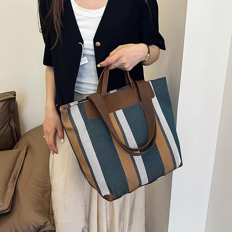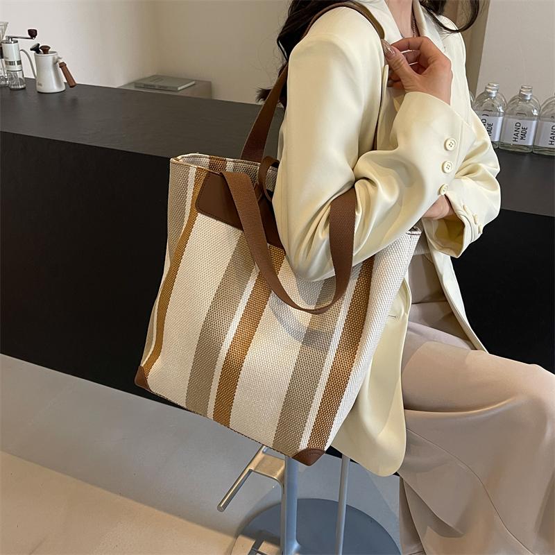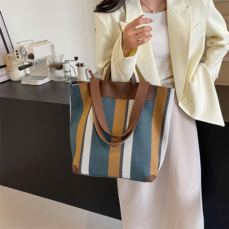 Женские сумки-ведра большой емкости в полоску через плечо, сумки-тоут для покупок, контрастные цветные сумки для поездок на работу и обратно