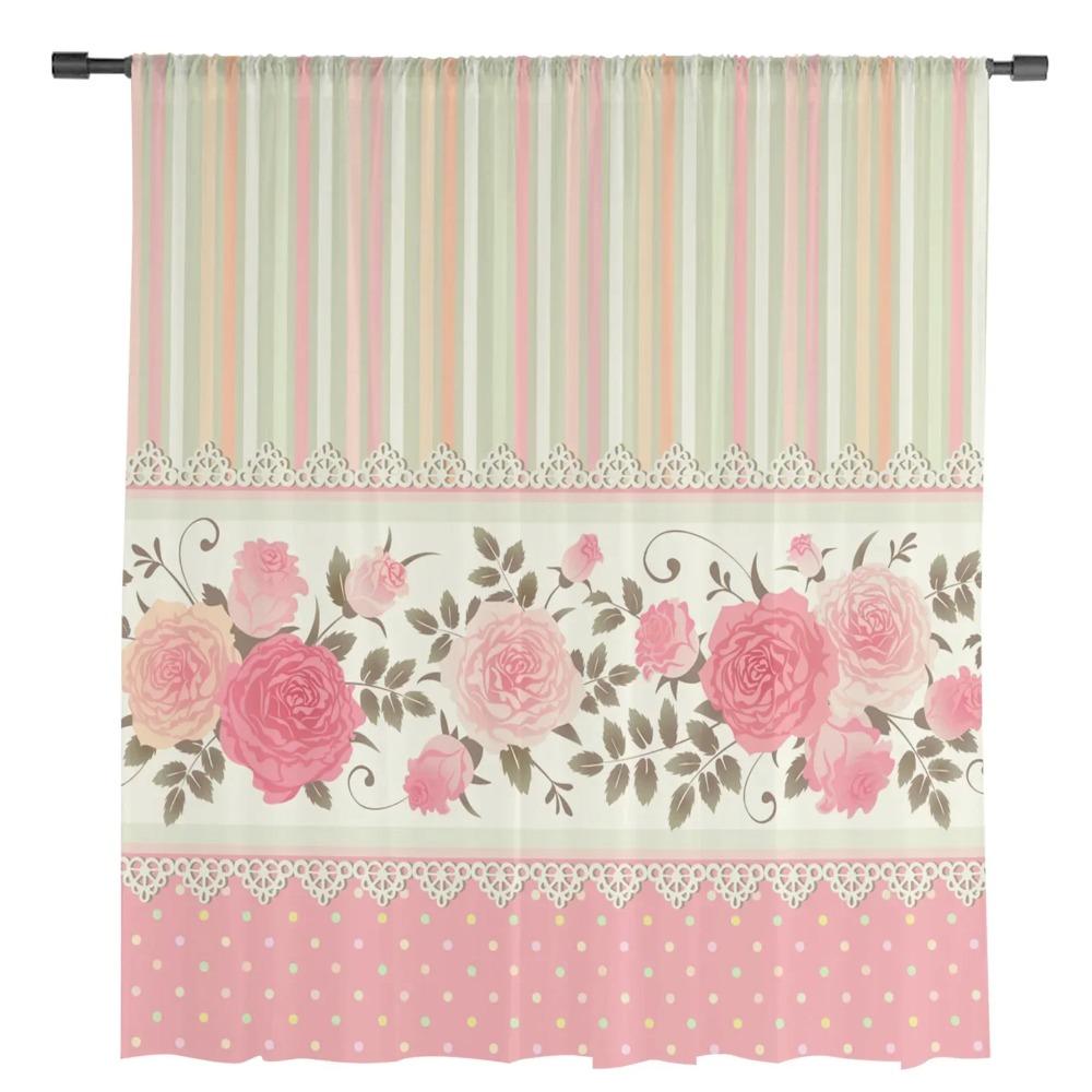 Розовые полосатые шифоновые прозрачные шторы для гостиной, спальни, украшения дома, оконные вуали, тюль, занавески