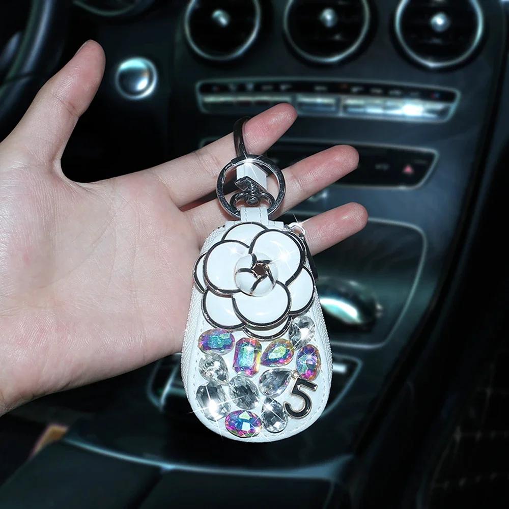 Блестящий алмазный кристалл автомобильный чехол для ключей Camellia Flower защитный чехол для автомобильного ключа универсальные блестящие автомобильные аксессуары для женщин
