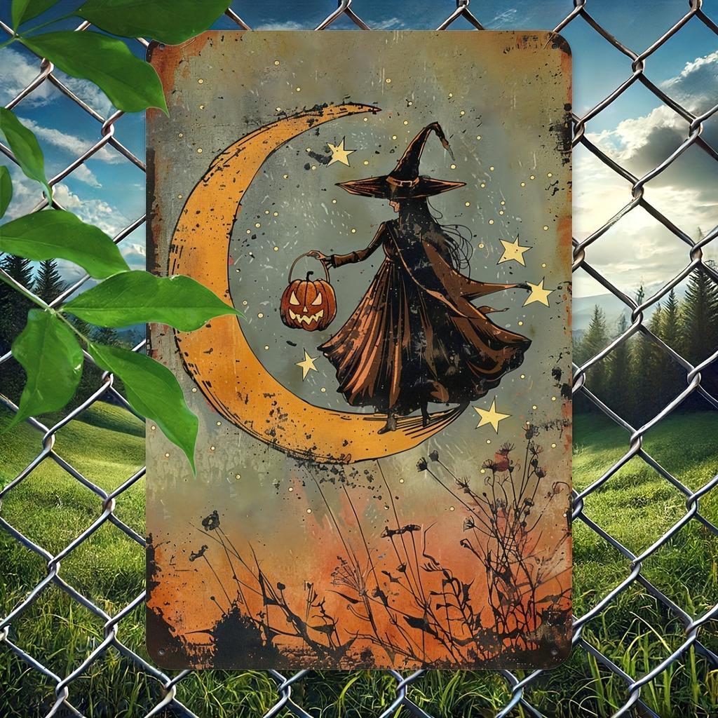 Старинный металлический знак Хэллоуина с изображением ведьмы, сидящей на луне, кованое железо, настенное художественное украшение для дома, кафе, гаража, библиотеки, клуба