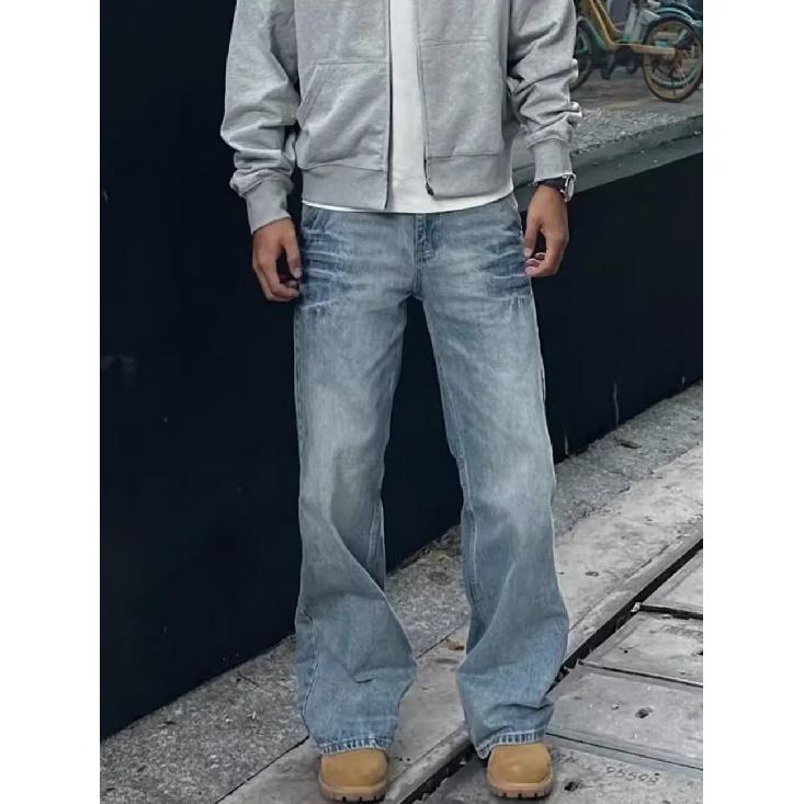 Джинсовые брюки High Street для мужчин, ретро-состаренные, свободные прямые брюки, спортивные брюки с широкими штанинами, модные