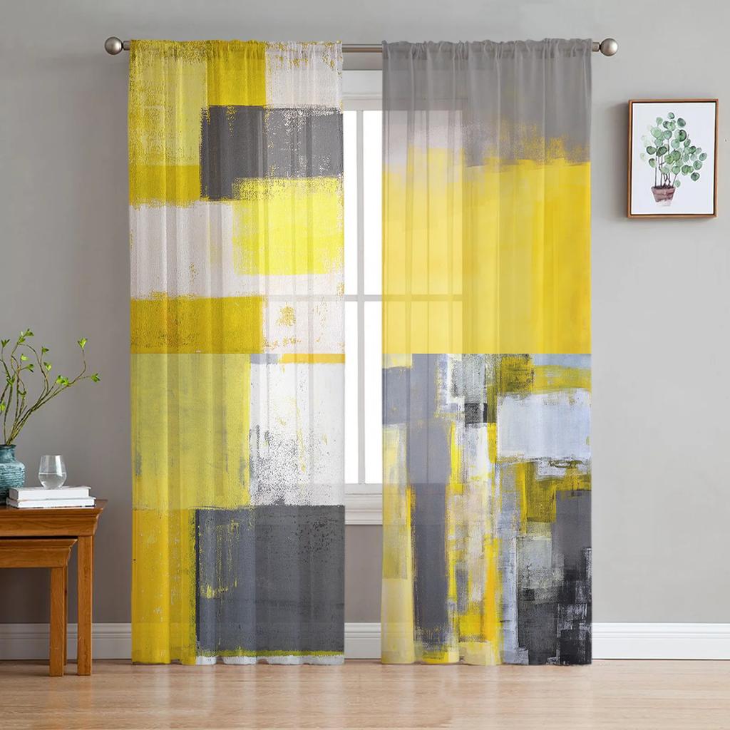 Черные Белые Прозрачные Шторы с Неправильной Геометрией для Украшения Гостиной Тюль Вуаль Органза Оконные Шторы для Кухни Спальни