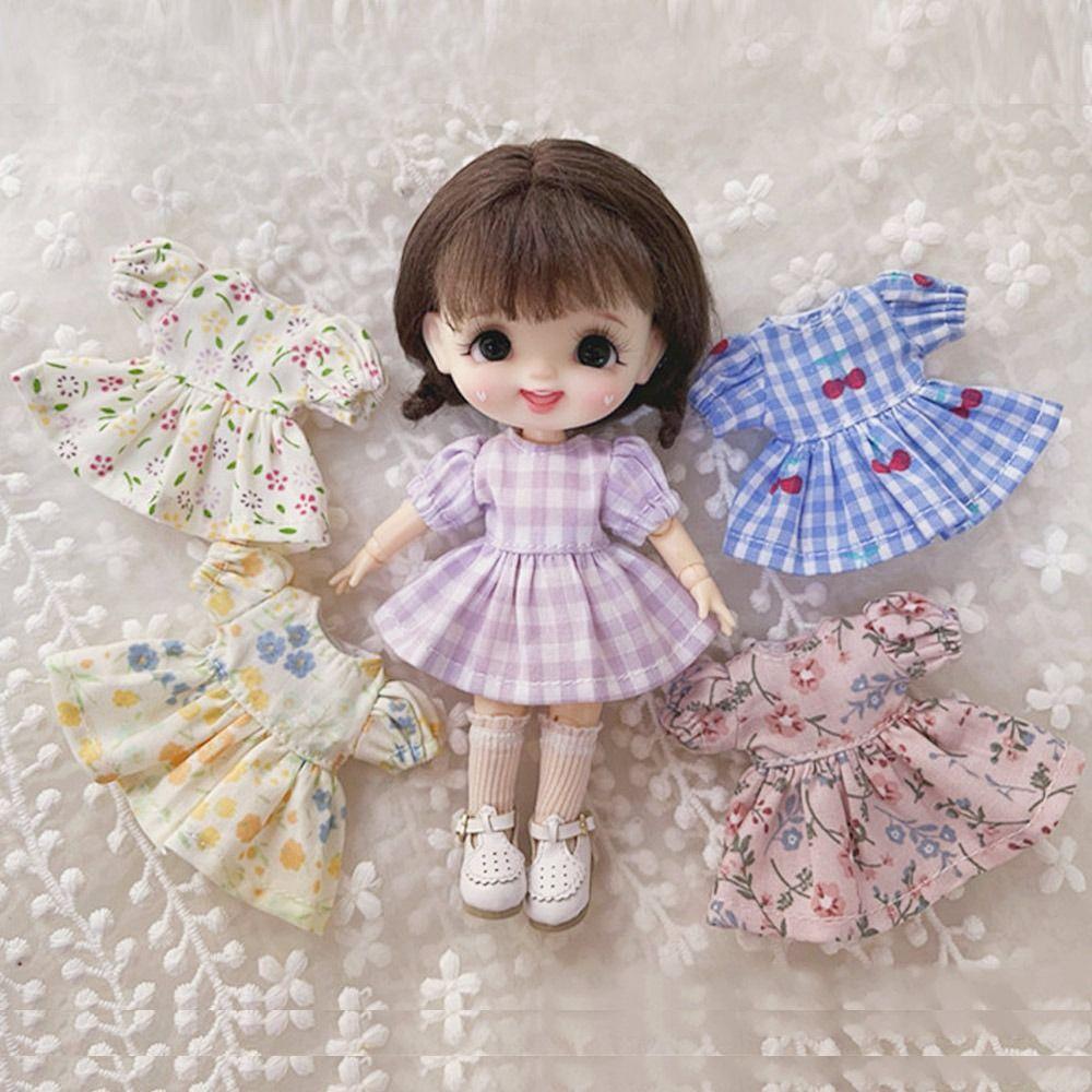 For BJD Dolls Short Sleeve Outfits Handmade Printed Dresses Doll Top Doll Skirt Clothes