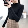 Женский дизайн выреза горловины Свитер с полувысокой горловиной Вязаный свитер Теплый Однотонный С рюшами Эластичный Пуловер Трикотаж Базовые женские топы Свитер с длинными рукавами