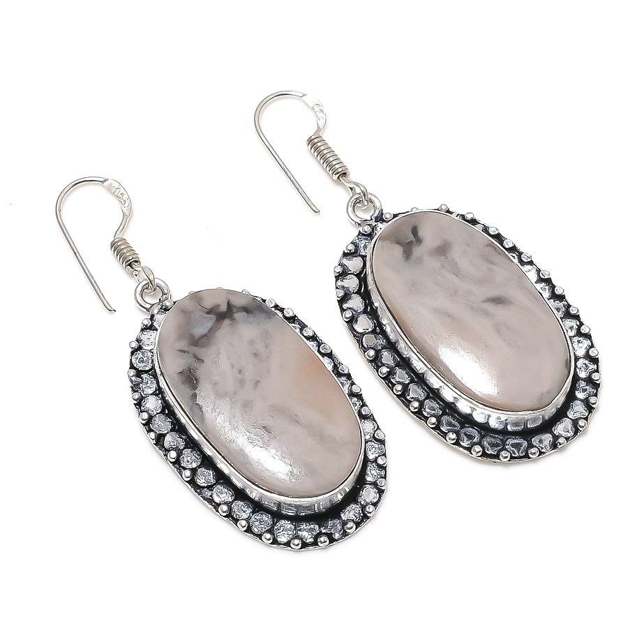 Серьги из стерлингового серебра 925 пробы с натуральным трубчатым агатом 2,17 дюйма M7S14