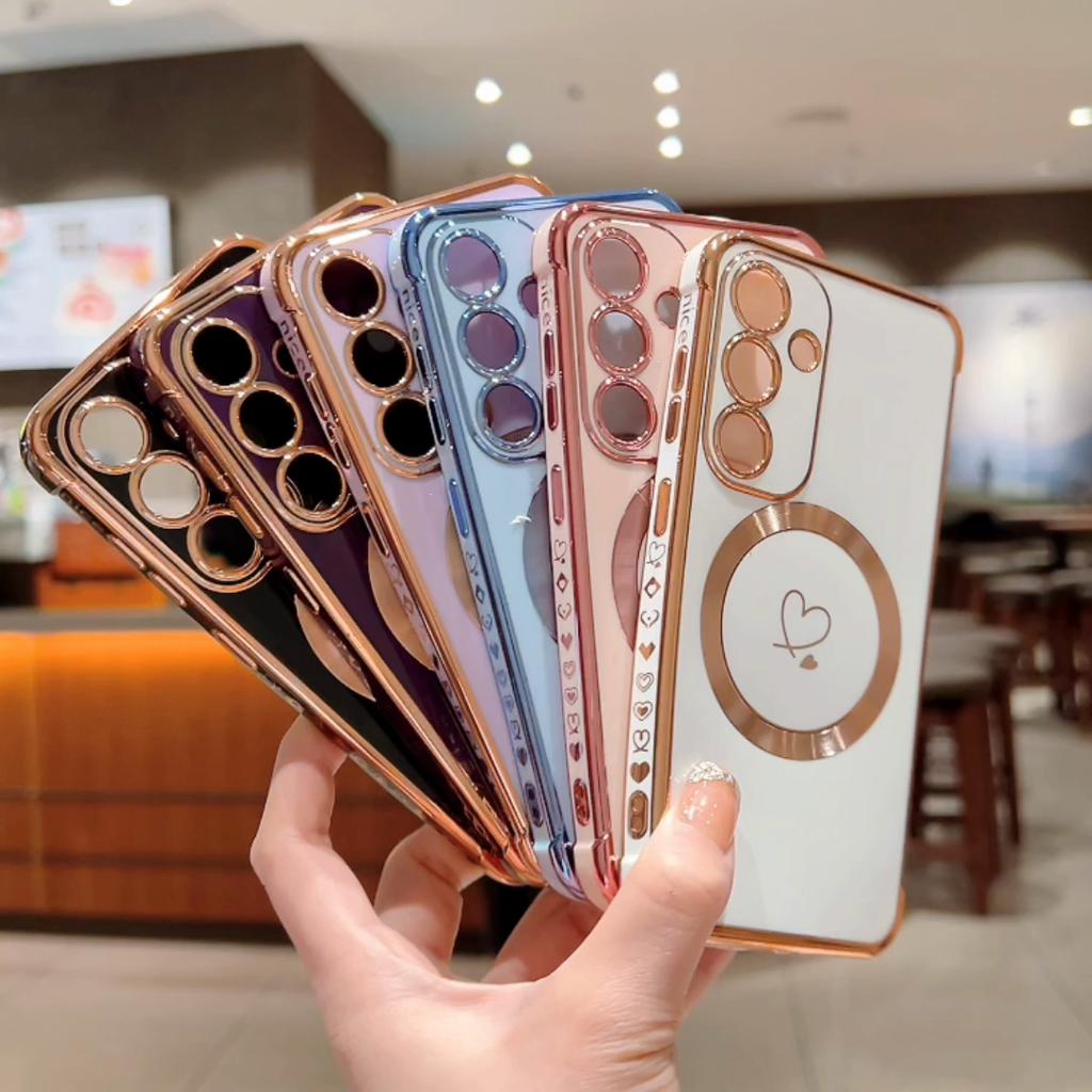Роскошный гальванизированный чехол Magsafe love Heart для Samsung Galaxy S21 S23 S24 S25 Plus Ultra S21FE S23FE с магнитной беспроводной зарядкой и противоударным покрытием