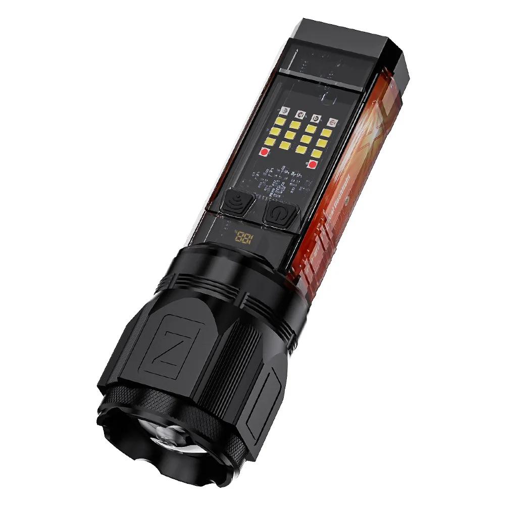 LED Flashlight Portable Flashlight Rechargeable Work Light Camping Bag Light Dual Light Source Lighting Lantern Outdoor Torch