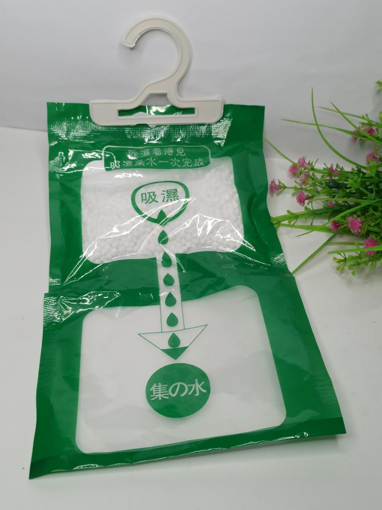 Подвесной влагопоглотитель содержит сферический хлорид кальция и однонаправленную влагопроницаемую бумагу, которая имеет функцию увеличения поглощающей площади и повышения эффективности поглощения.