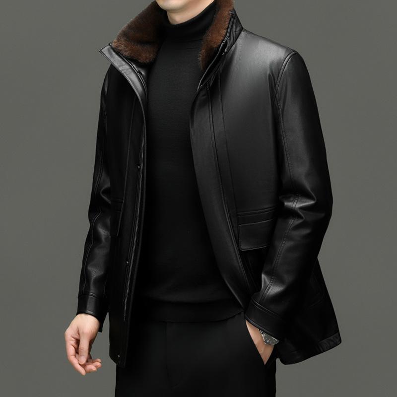 Зимняя мужская куртка из натуральной кожи, верхняя часть из бархатной овчины средней длины, теплая ветрозащитная куртка для папы среднего возраста