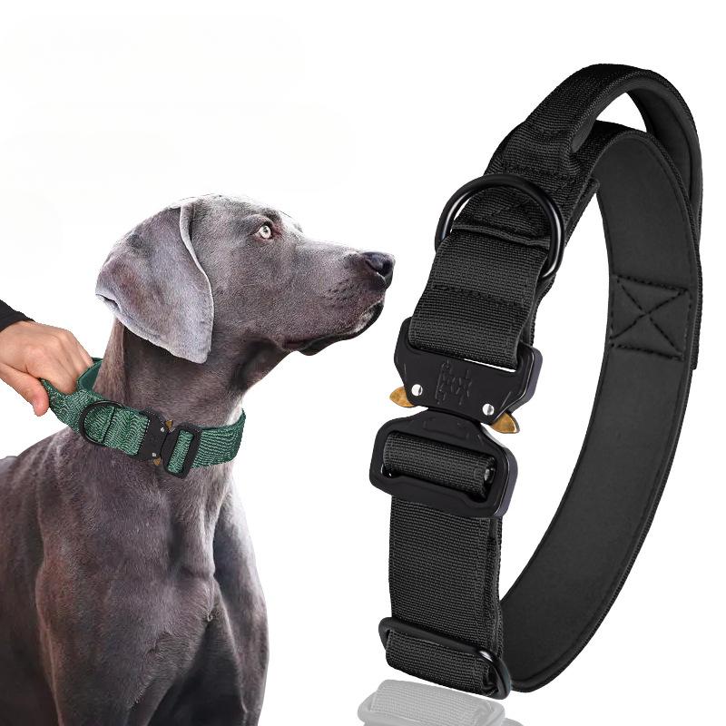 Тактический ошейник для собак Регулируемый военный тренировочный нейлоновый ошейник для собак с ручкой управления и тяжелой металлической пряжкой для средних и больших размеров