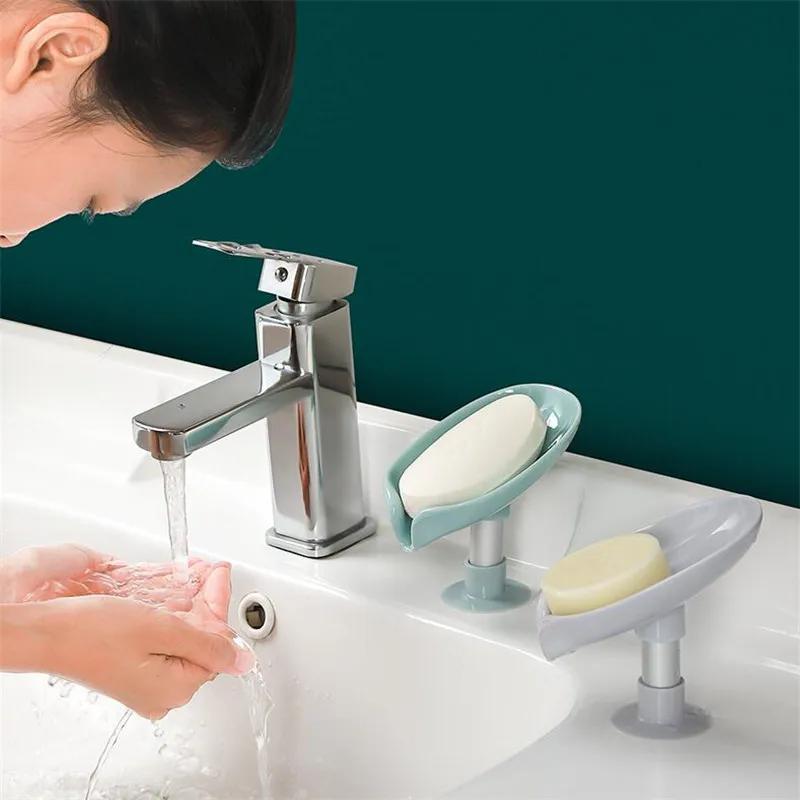 Коробка для мыла в форме листа, держатель для мыла, ванная комната, душ, держатель для мыла, поднос для хранения губки, креативная присоска, безводная коробка для хранения