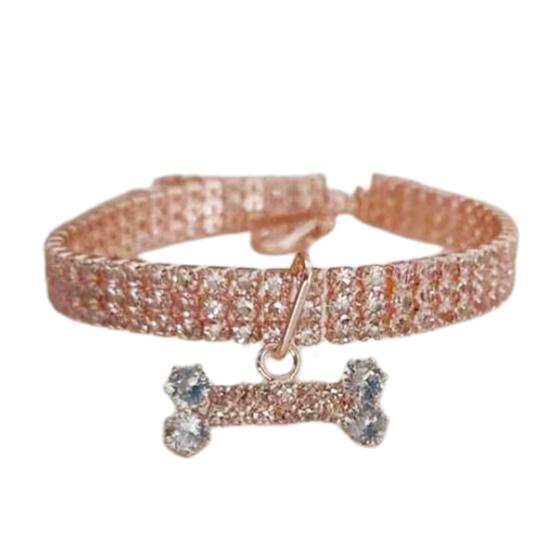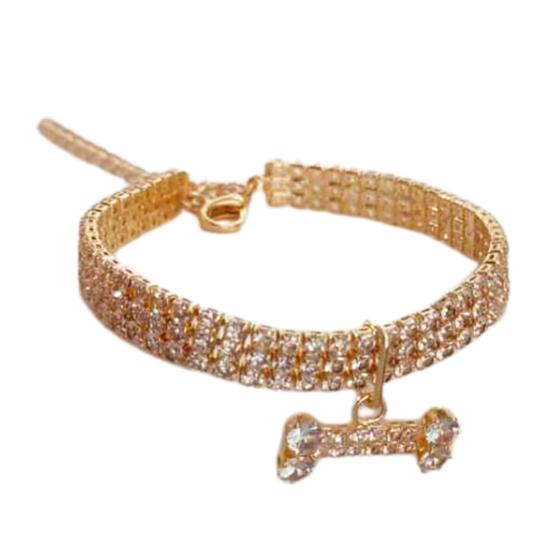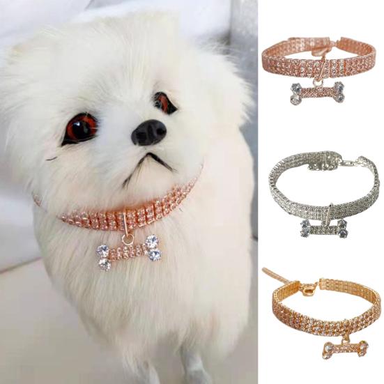 Есть особенности трех рядов инкрустированного стразами и костяной подвеской, ожерелье для домашних животных блестящее, модное и привлекательное для вашего питомца.