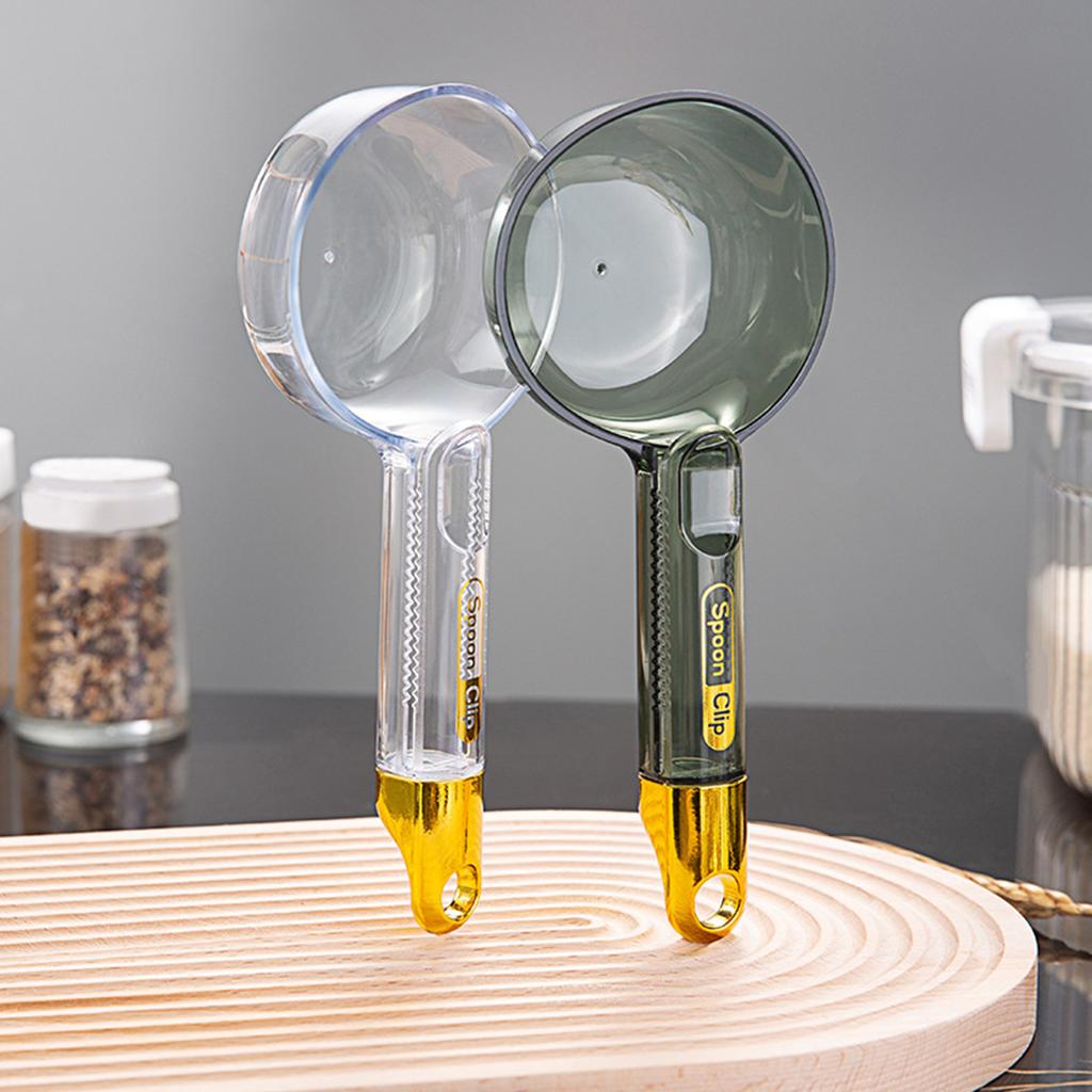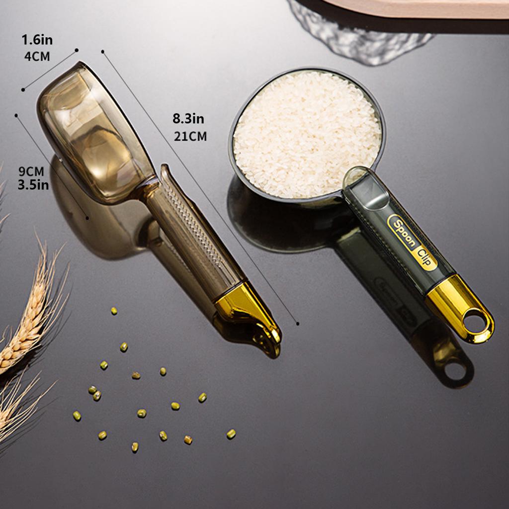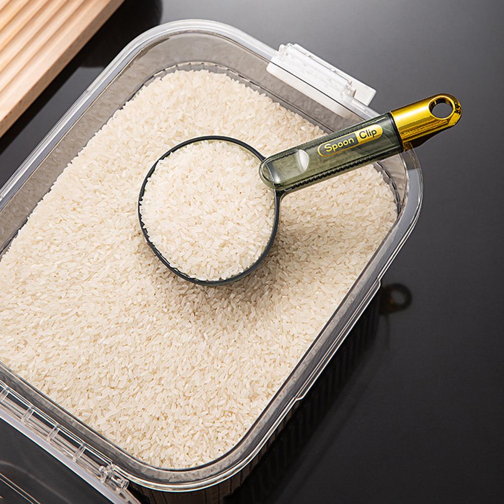 Многофункциональная ложка для риса с зажимом, пластиковая ложка с длинной ручкой для измерения риса и муки, кухонный гаджет, кухонные принадлежности