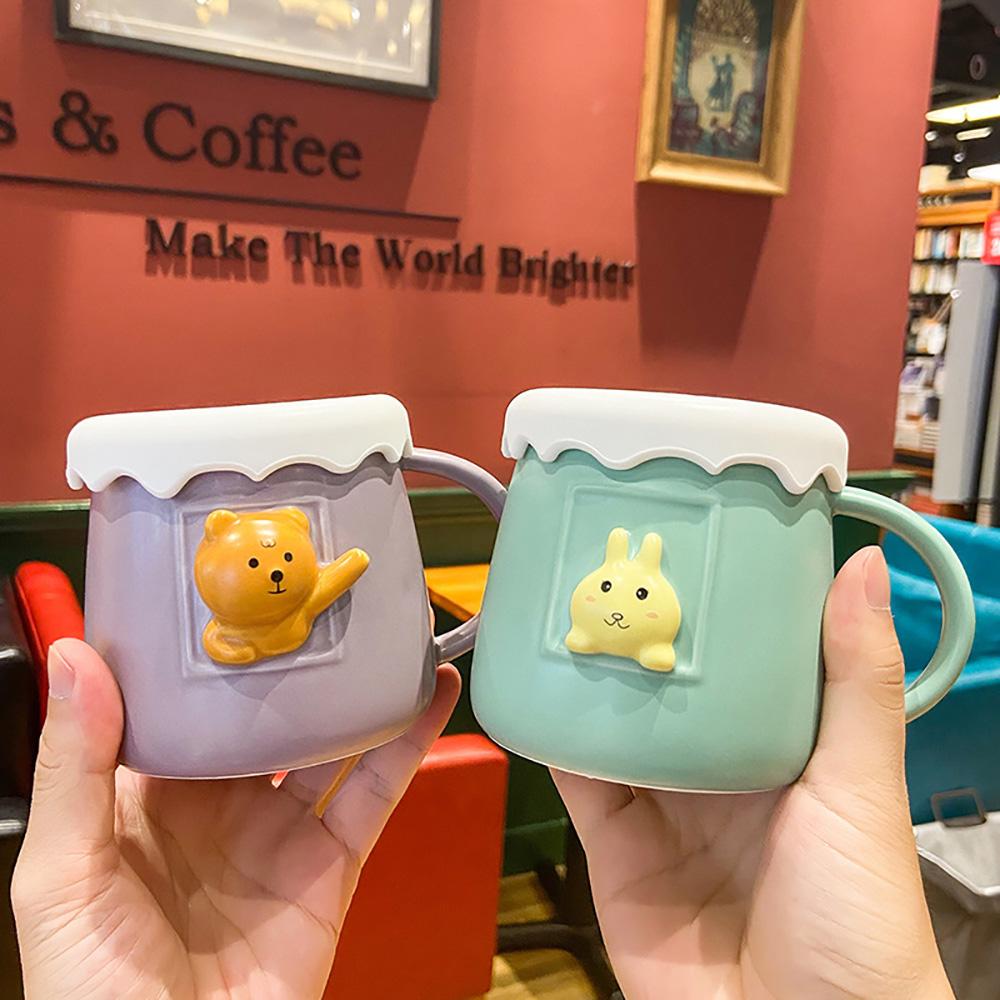 3D объемный рельеф Кружка пара стакан воды милый медведь кролик животное бытовая керамические кружки завтрак молоко детская чашка