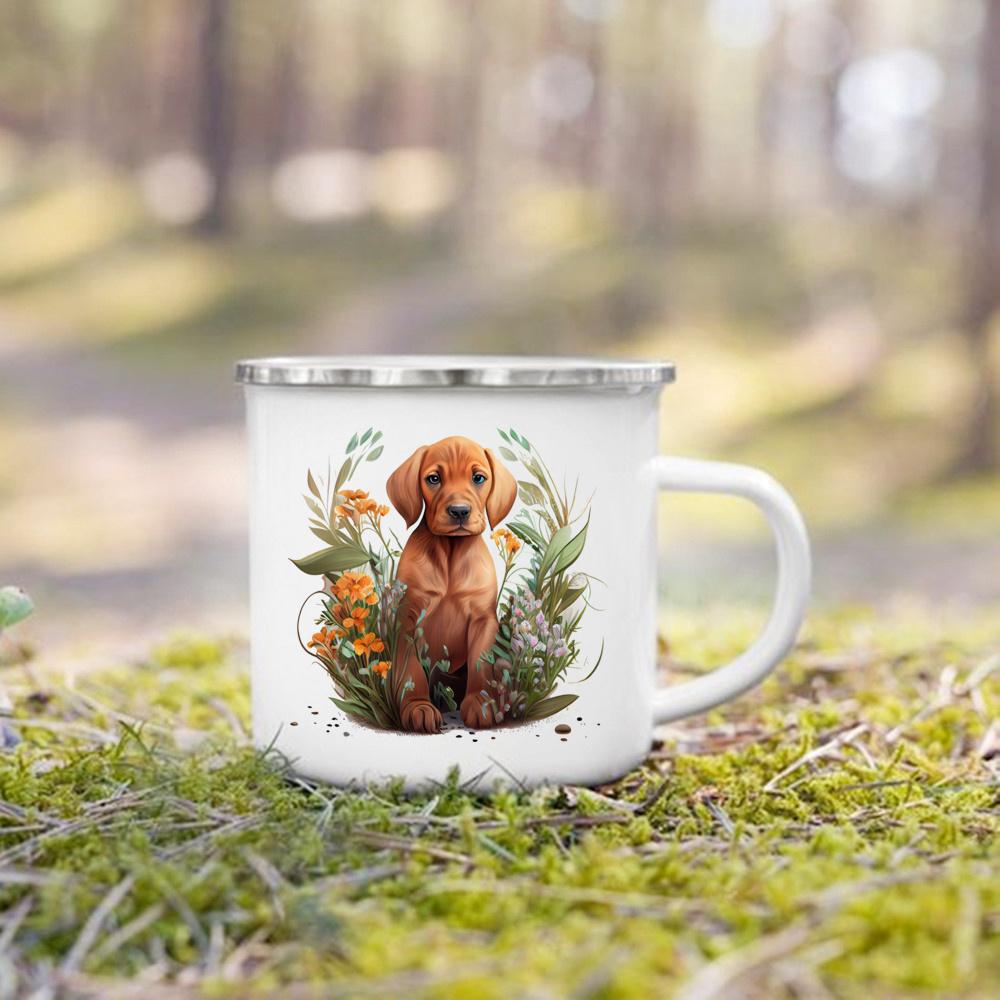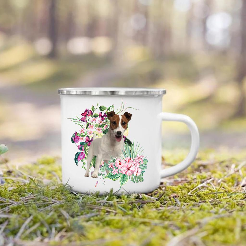 Эмалированная кружка с принтом, кружка с ручкой для кемпинга, подарки для любителей собак, кофейная чашка, такса, бульдог, бордер-колли, золотистый ретривер