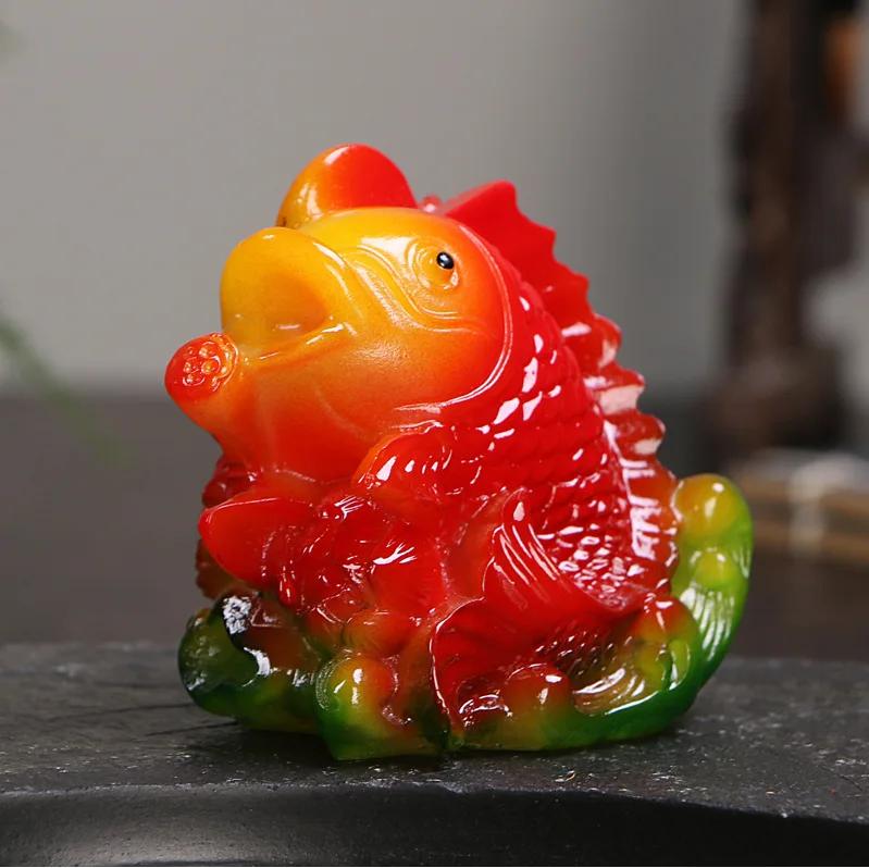 Красивая фигурка золотой рыбки из смолы, меняющая цвет, китайские изделия ручной работы, чайный питомец, чайные аксессуары, украшения для дома в стиле фен-шуй
