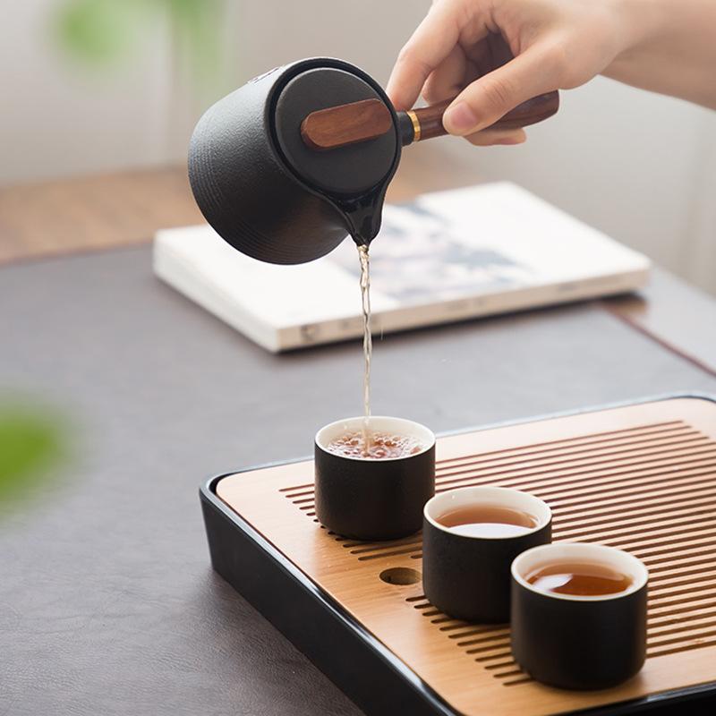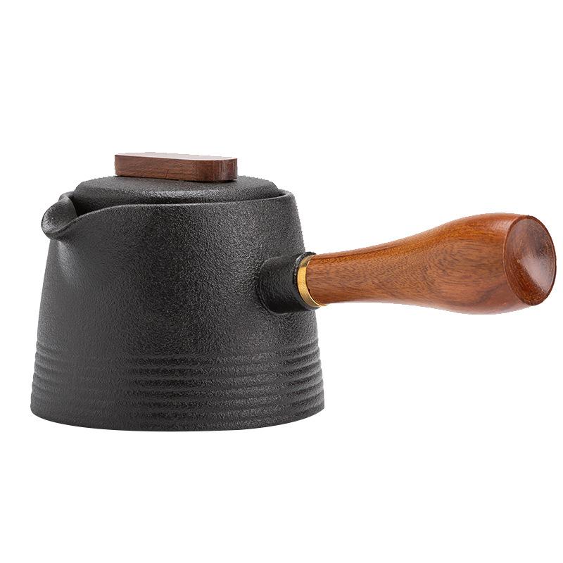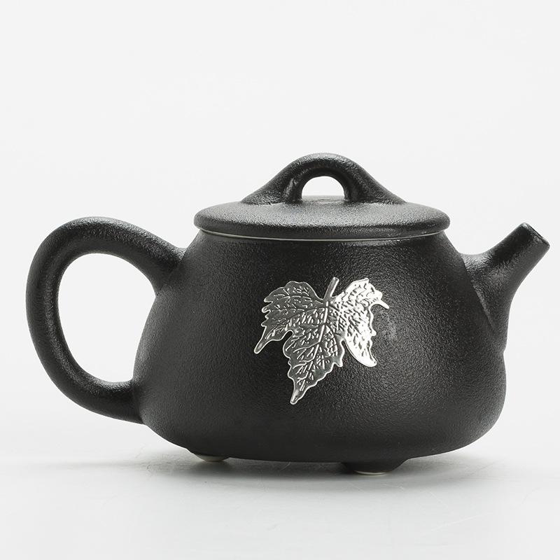 Черная керамика с боковой ручкой, инкрустированной оловом, старинный керамический чайный сервиз в стиле кунг-фу, чайник, фарфоровый чайник, глиняная посуда, чайная посуда пуэр