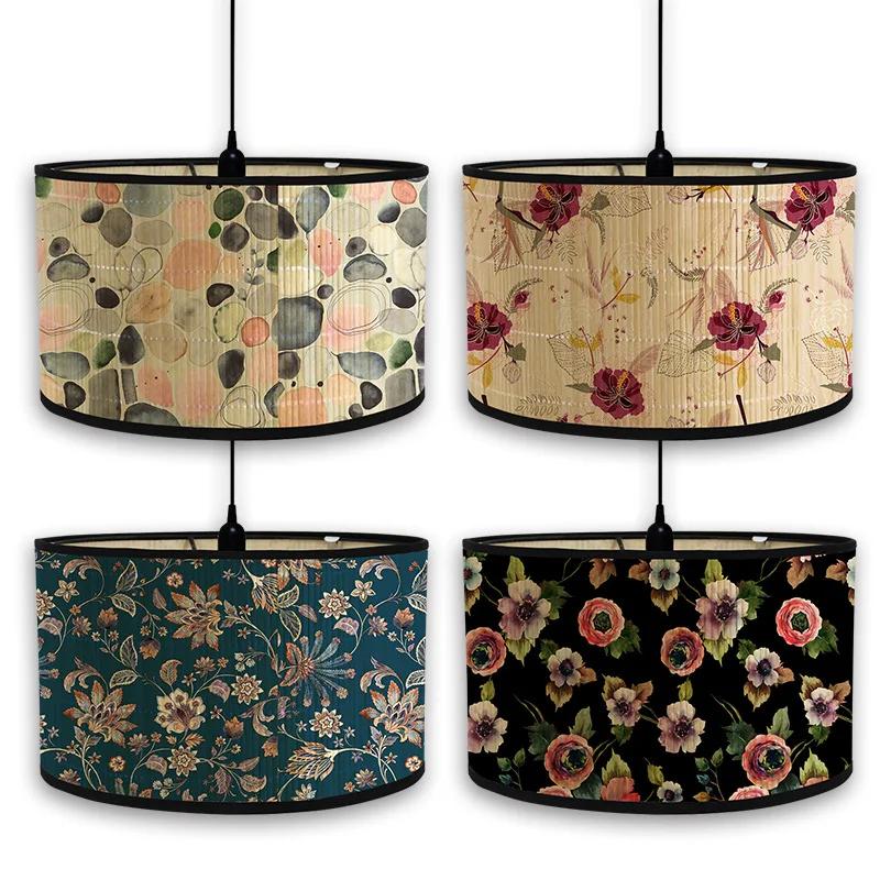 30 см абажур для напольного светильника с принтом в виде зелени, настольный абажур из бамбука в скандинавском стиле, винтажный декор для гостиной с принтом