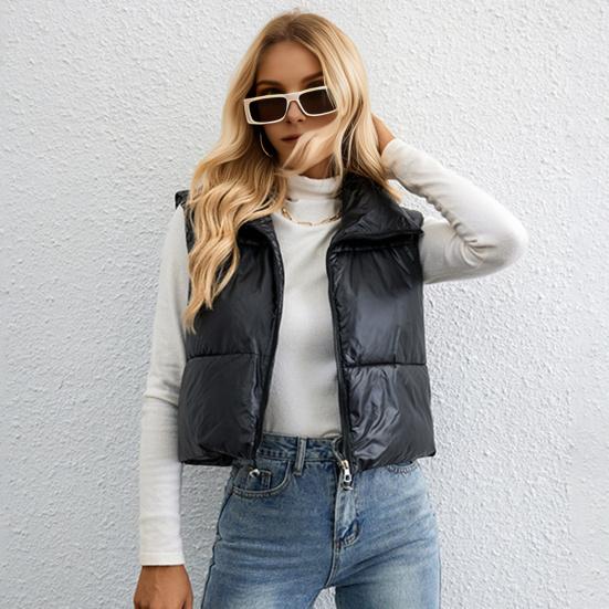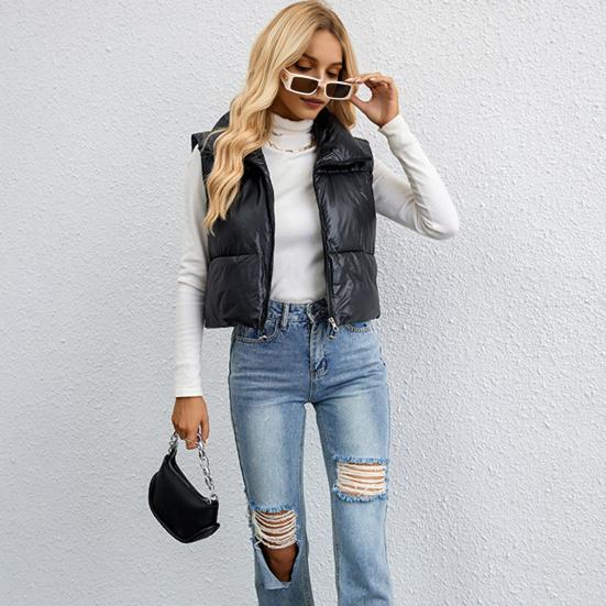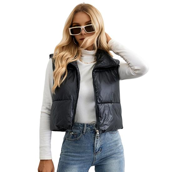 Премиум полиэфирного волокна: Этот женский жилет, изготовленный из высококачественного полиэфирного волокна, мягкий и легкий.. Полностью утепленная изнутри, с превосходной устойчивостью к холоду, она обеспечивает тепло и комфорт осенью и зимой.