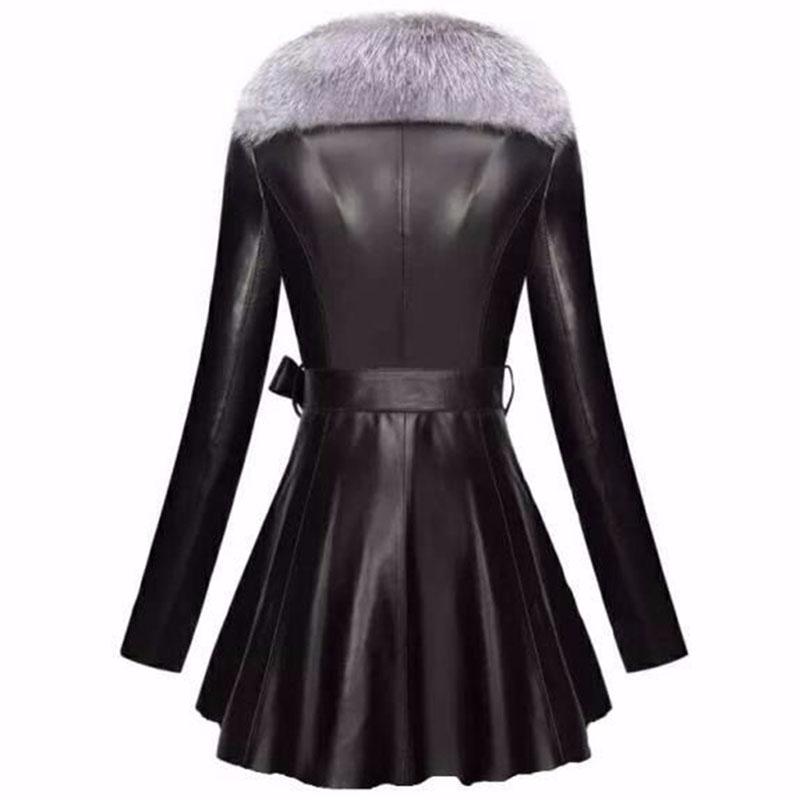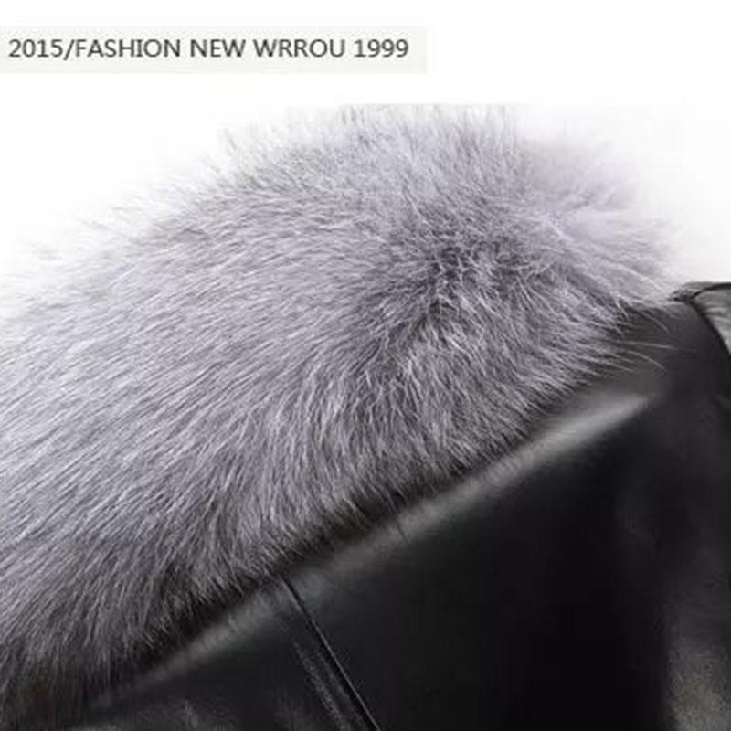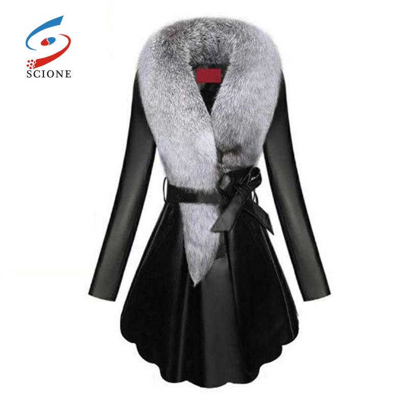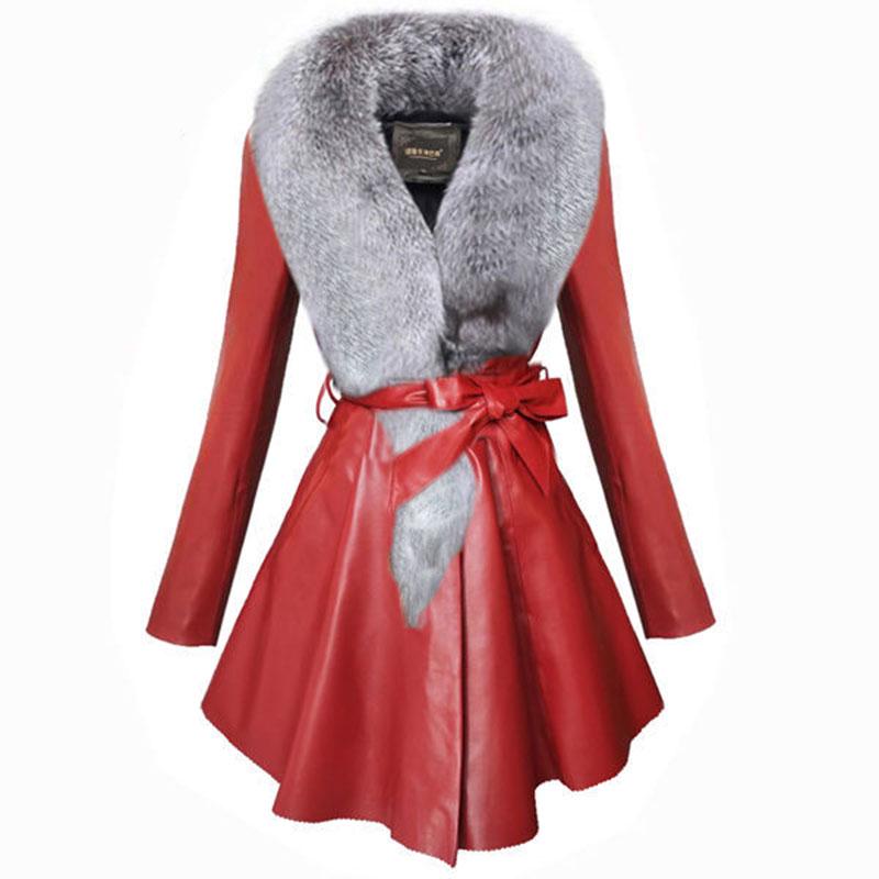 Кожаная женская плюс хлопковая куртка, тонкая, из искусственного меха, воротник из искусственного лисьего меха, большой мех серебристой лисы