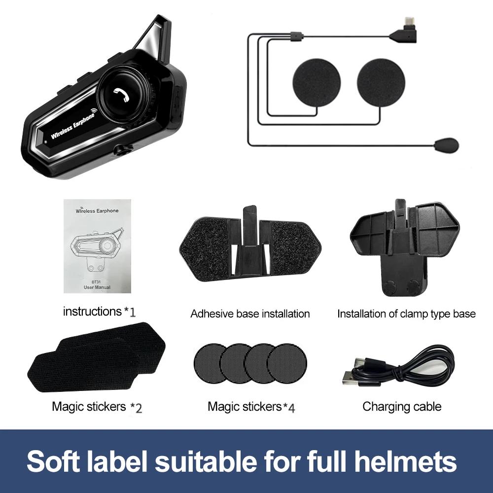Kebidumei BT31 Гарнитура для мотоциклетного шлема Bluetooth Вызов в режиме громкой связи IP65 Водонепроницаемая 500 мАч с интеллектуальным шумоподавлением CVC