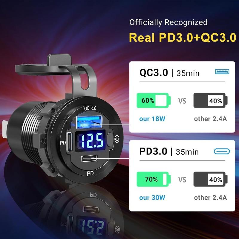 12 В быстрая зарядка 3.0 USB C автомобильное зарядное гнездо двойное PD и QC3.0 USB быстрая зарядка розетка с подсветкой и переключателем вольтметра