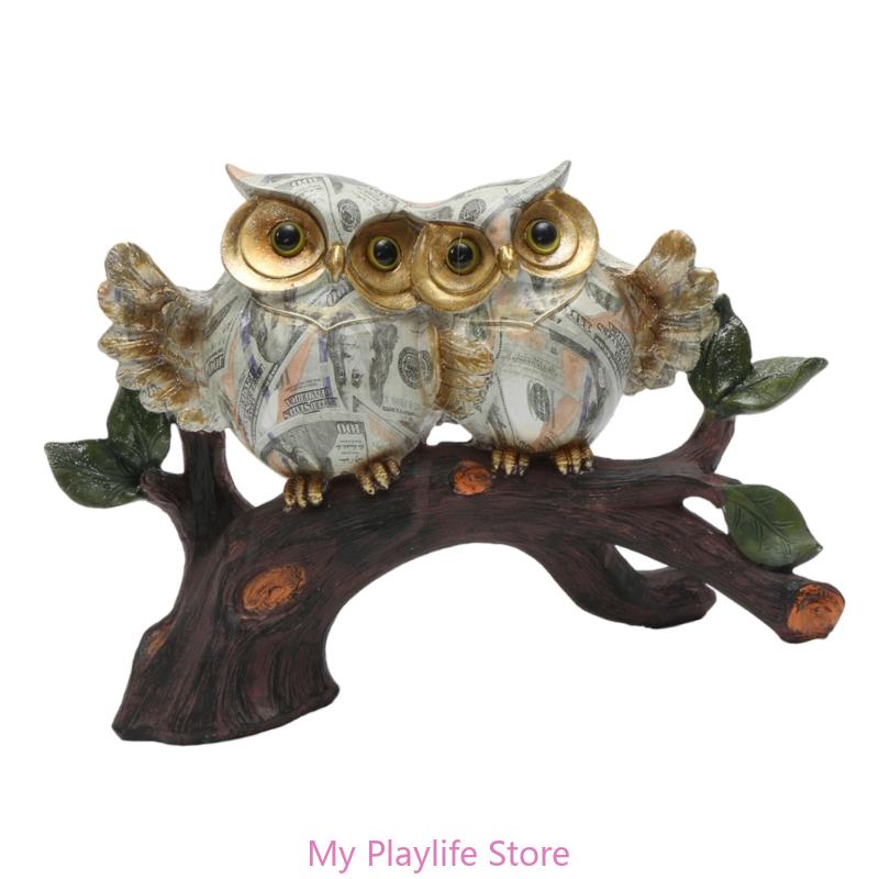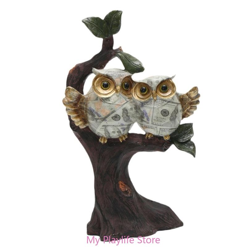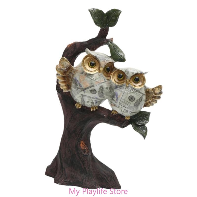 Скульптура совы ручной работы, рисунок на воде, сова, сидящая на ветке дерева, статуэтка из смолы, украшение для коллекционеров