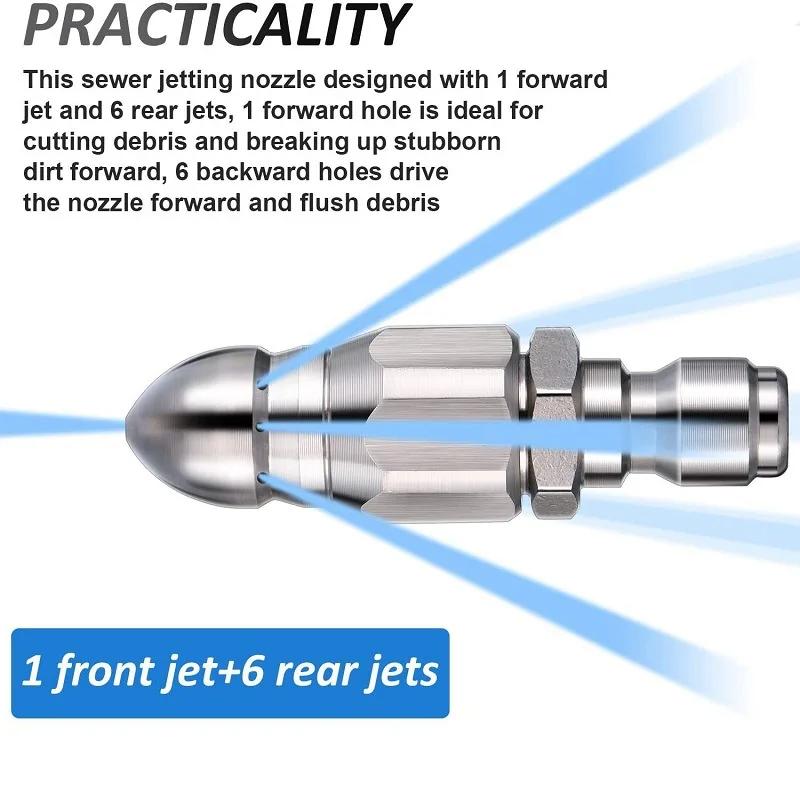 Насадка для распыления воды высокого давления для очистки канализации 1/4" из нержавеющей стали, насадка для мойки под давлением с быстроразъемным соединением, сливной шланг