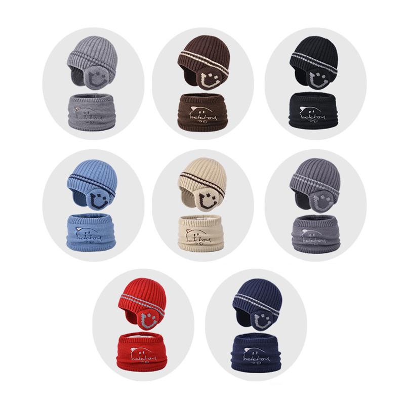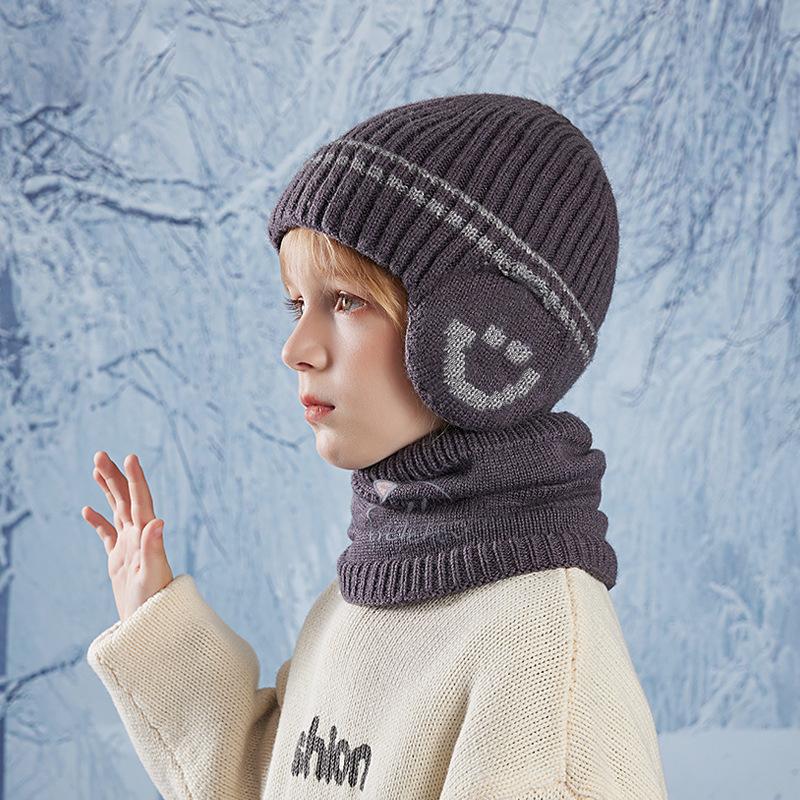 Детская шапка, шарф, костюм, зимний бархатный защитный свитер, шапка для мальчиков, ветрозащитная, теплая, вязаная шерстяная шапка