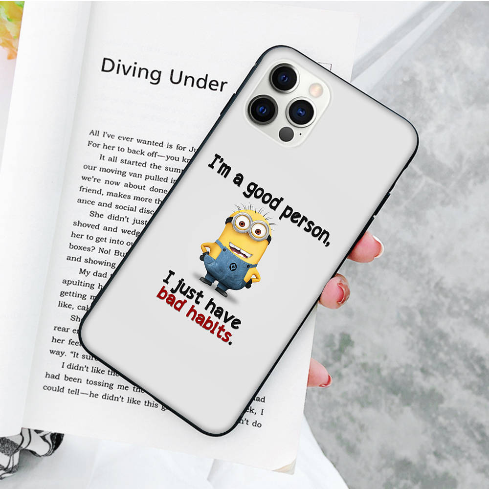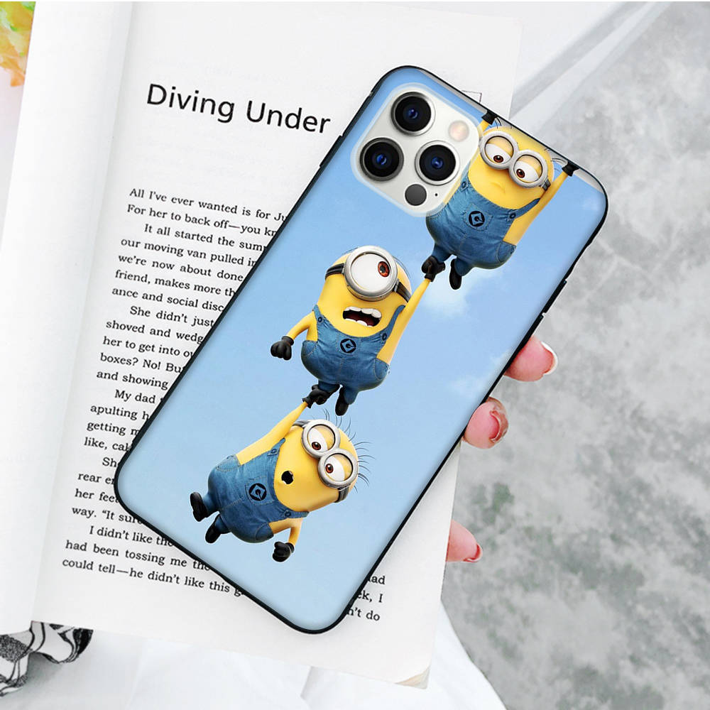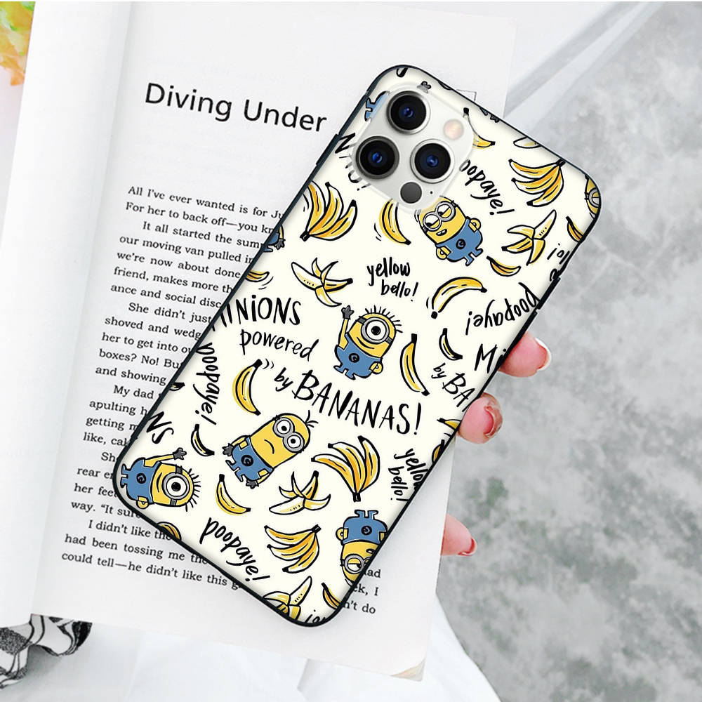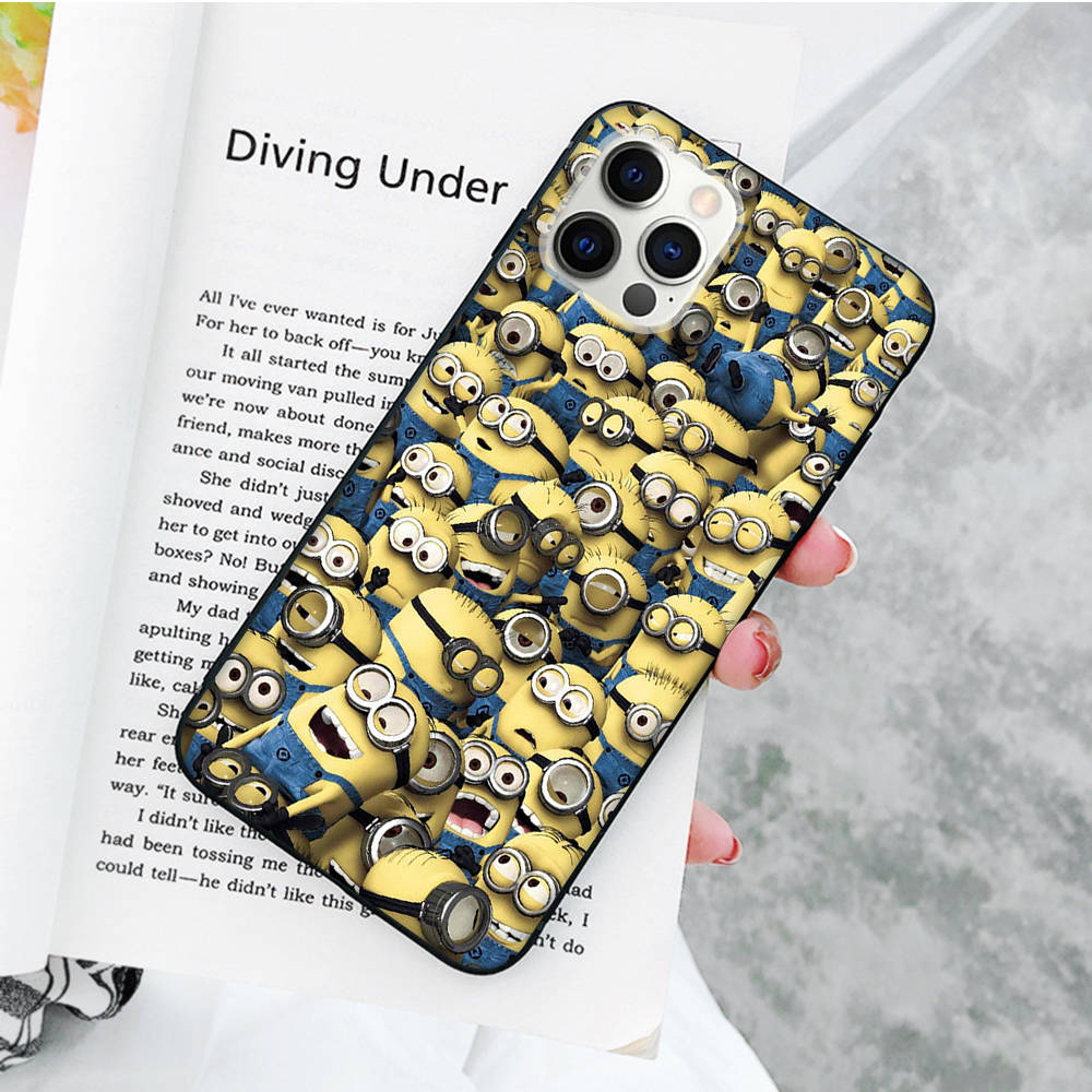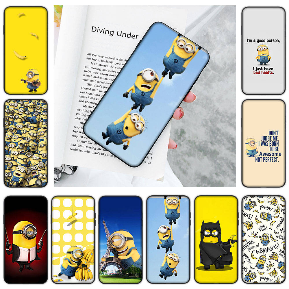 JM28 Милые Миньоны черный мягкий чехол для Samsung Note 20 Lite S24 Ultra S23 A03 A05 A06 A11 A71 A15 A16 A13 A24 A25 A33 A52 A53 A50 M55 M35 Plus