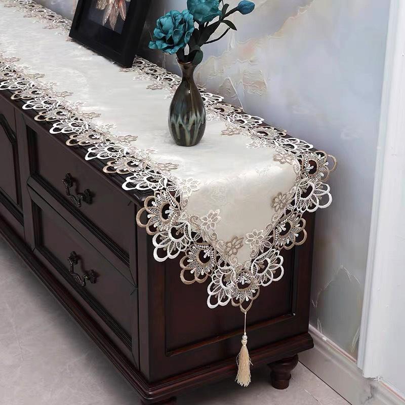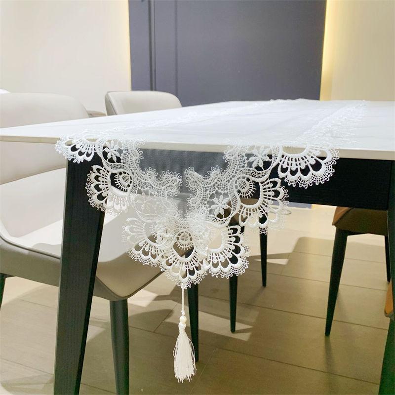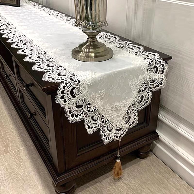 Кружевная дорожка для флага на стол Кружевная ткань Подвеска для стола с кисточками Скатерть с вышивкой цветов Противоскользящая защитная накладка для шкафа