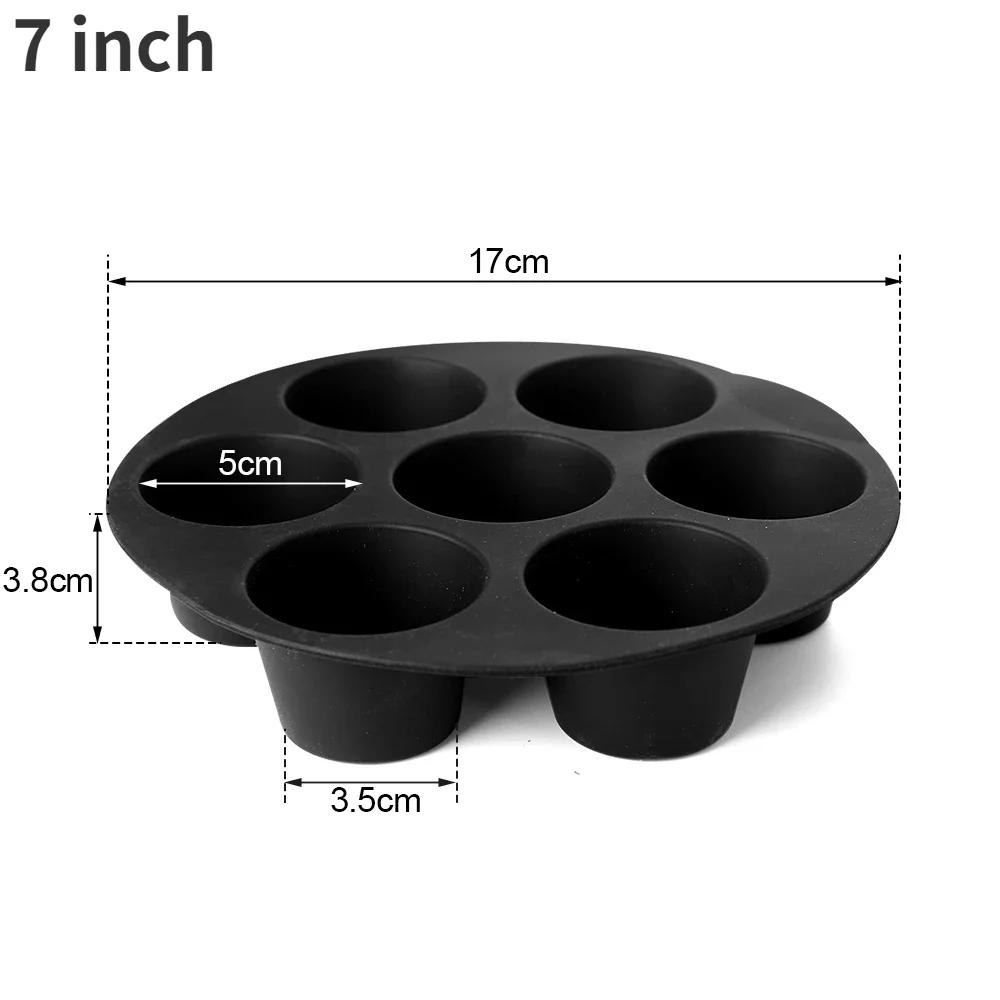 Силиконовая ровная круглая форма для кексов, 7 шт., аксессуары для фритюрницы, 7 шт., форма для торта, форма для выпечки в микроволновой печи, коврик для выпечки