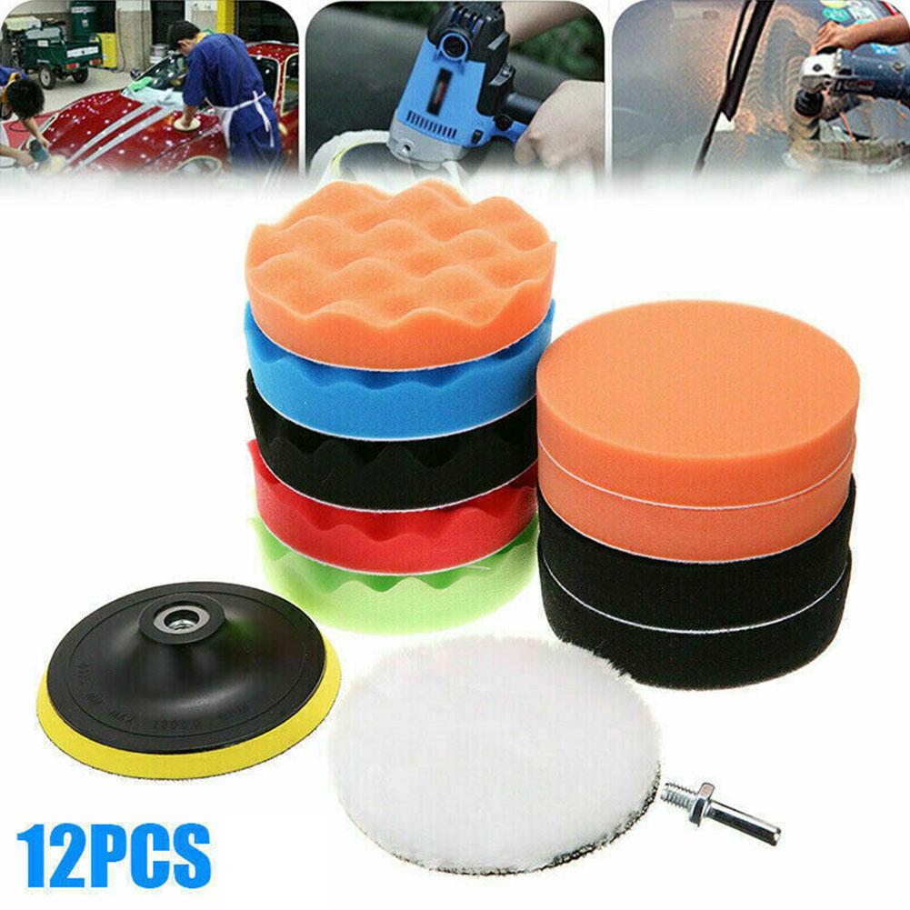 12 шт./компл. полировальный диск для автомобиля, самоклеящаяся полировка, восковая губка, шерстяная полировальная накладка для полировки автомобиля, адаптер для дрели V7H9