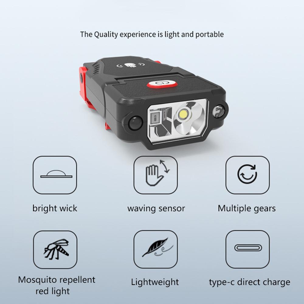 Светодиодный индукционный налобный фонарь Мини-фонарь с зажимом для шляпы Налобный фонарь для рыбалки на открытом воздухе Водонепроницаемый USB-зарядный фонарь с зажимом для шляпы