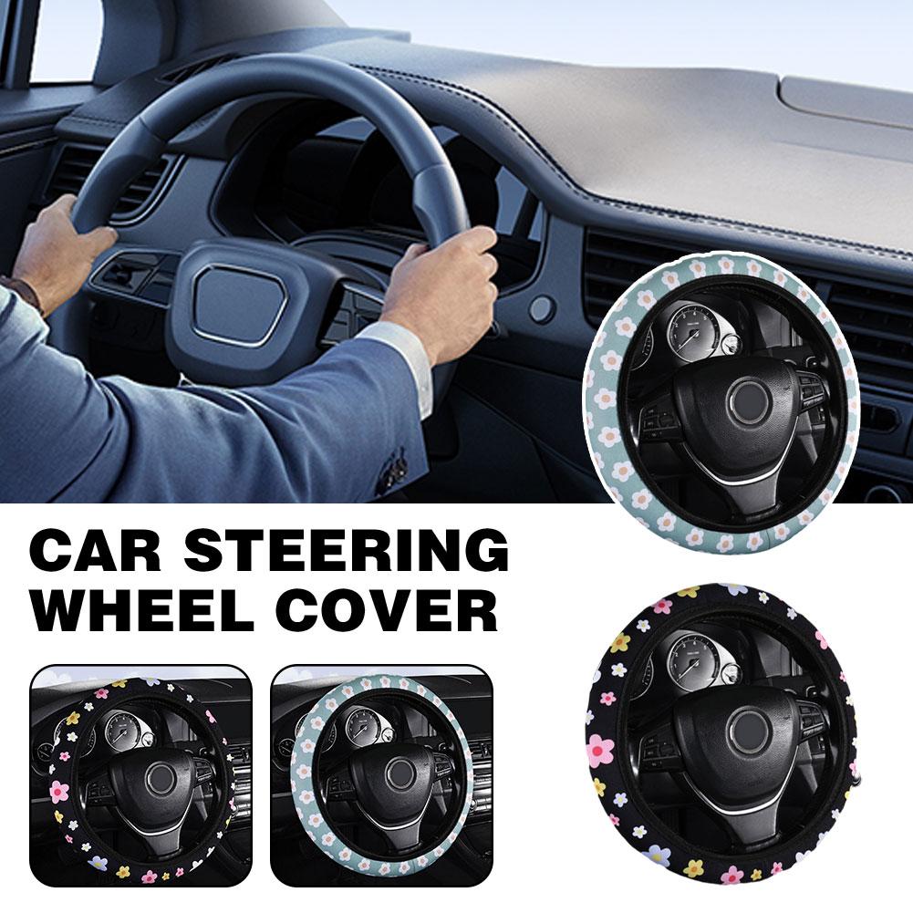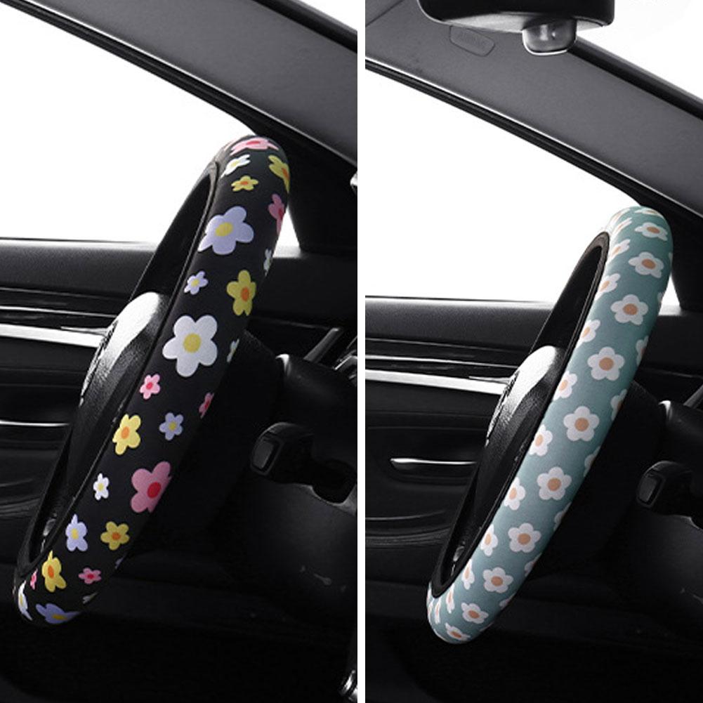 Милая Цветочная Накладка на Руль Автомобиля Удобная Поглощающая Пот Украшение Руля Нескользящая Износостойкая Защита L0Y0