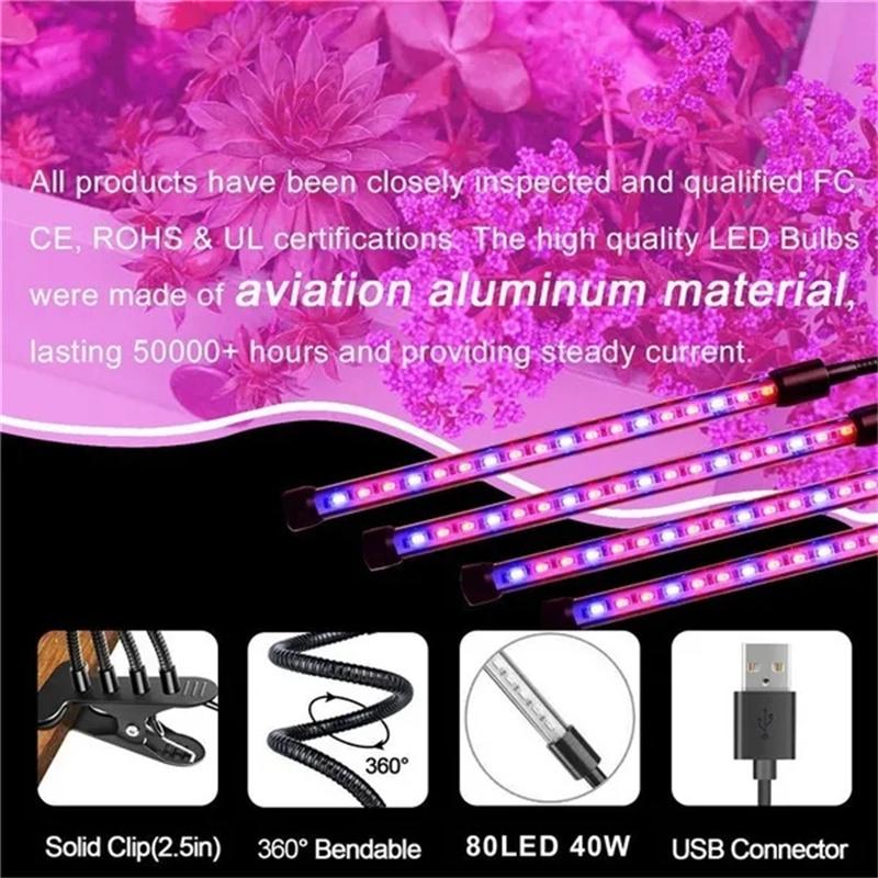 USB светодиодный светильник для выращивания растений в помещении, сад, 10 уровней регулировки яркости, светильник для выращивания растений, полный спектр, настройка таймера, гидропонная теплица, 3 ч/9 ч/12 ч