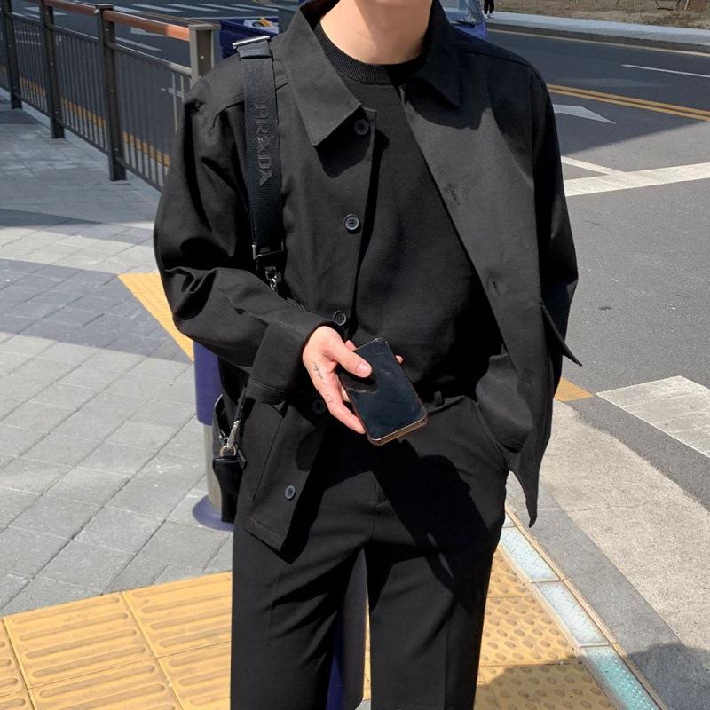Повседневные куртки для мужчин, осенние, новые, однотонные, свободные, мужские, корейского стиля, модные, универсальные топы
