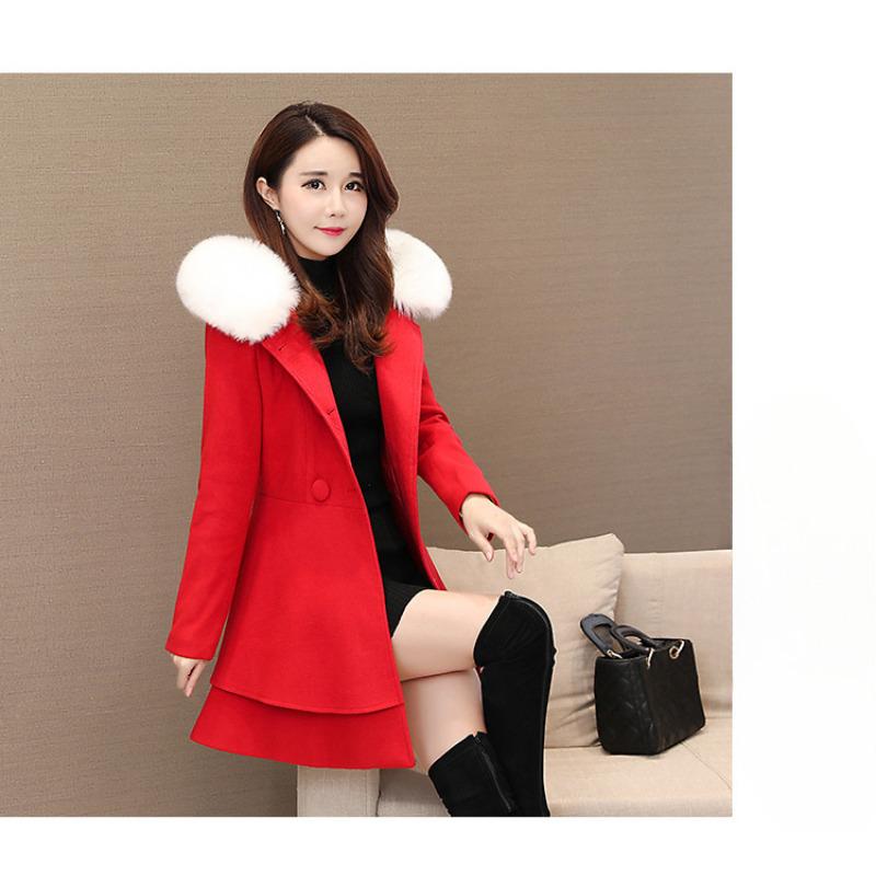 Новое шерстяное женское пальто осень-зима меховой воротник пальто низи корейская версия облегающий топ с капюшоном