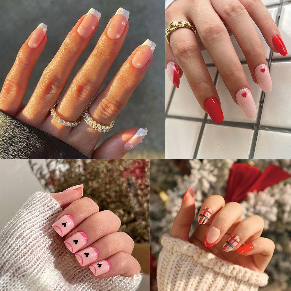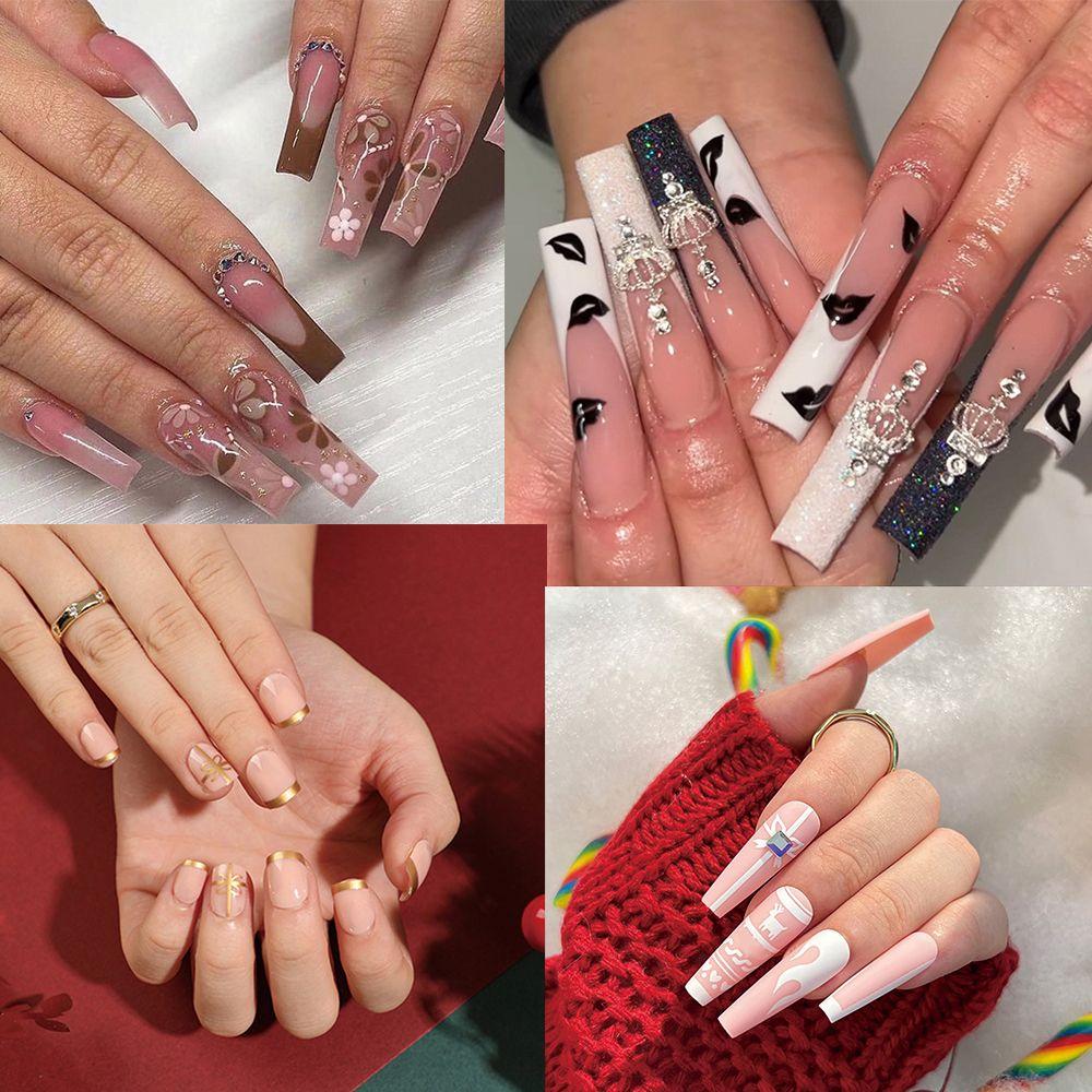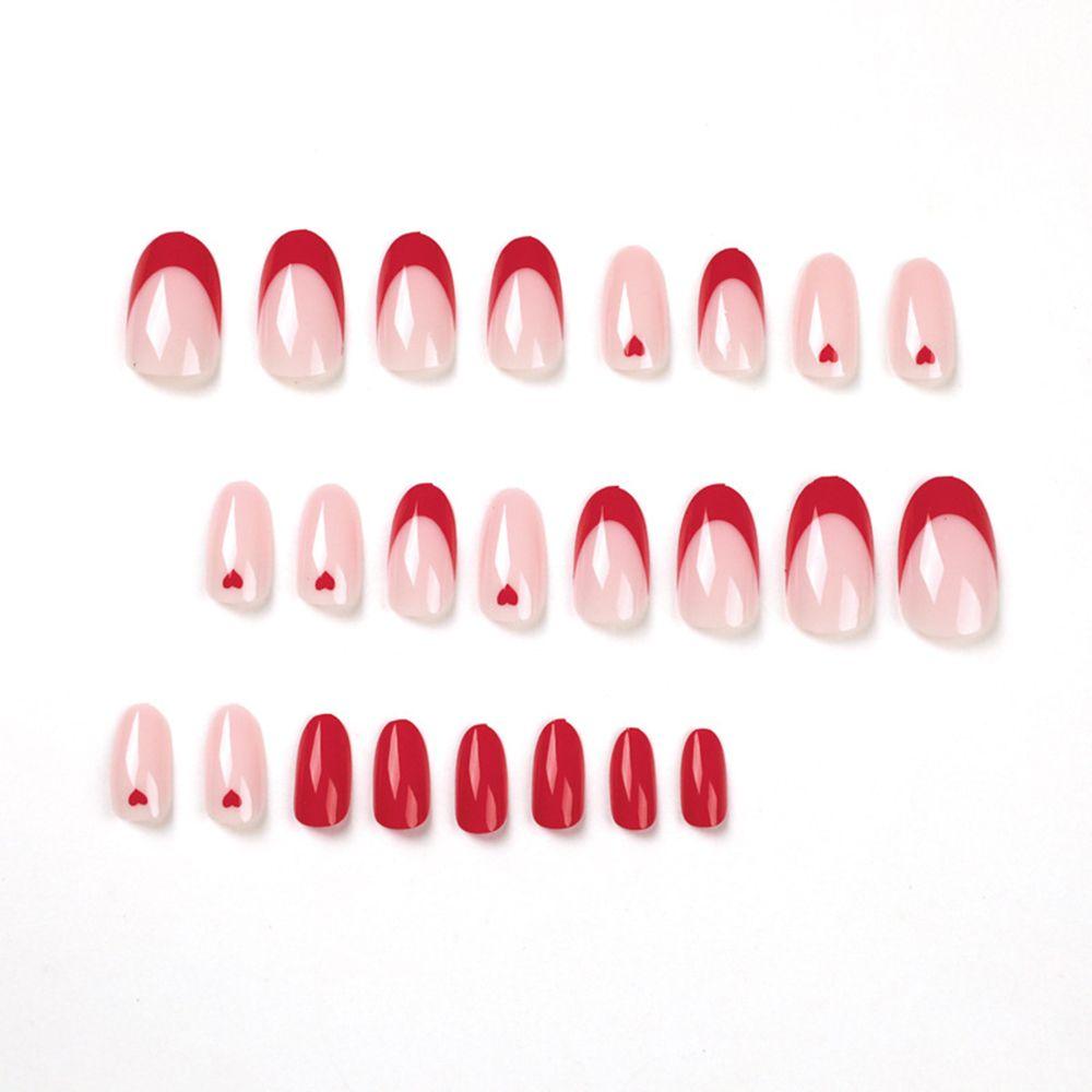 24 шт. длинные ногти Coffin Crystal Red Love French Flower накладные ногти полное покрытие накладные ногти