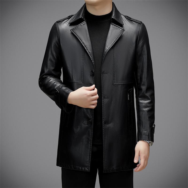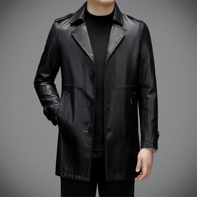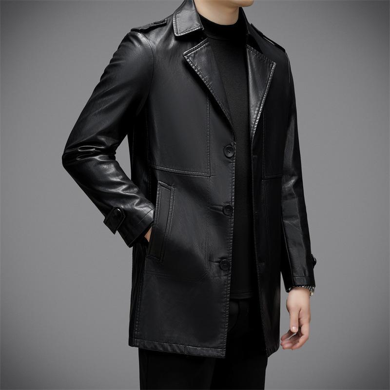 Осенью и зимой новая мода повседневная плюс бархатная кожаная куртка средней длины мужской костюм воротник темперамент кожаная ветровка