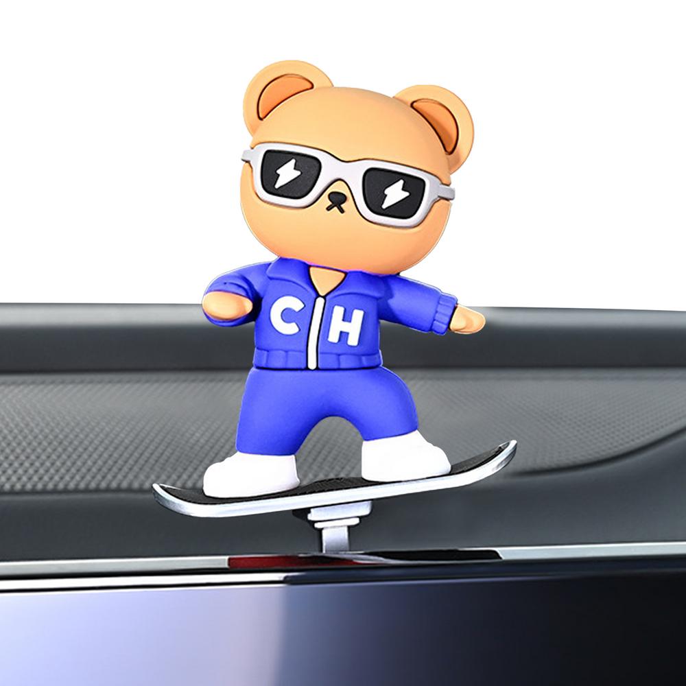 Скейтборд Медведь Украшение для автомобиля Центральный экран управления Украшение Милая и мультяшная фигурка Забавная скульптура Аксессуары для автомобиля