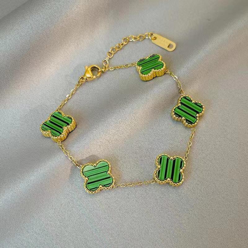 Новый браслет из перламутра с четырехлистным клевером: Корейский простой стиль Ins, большой дизайн из титановой стали