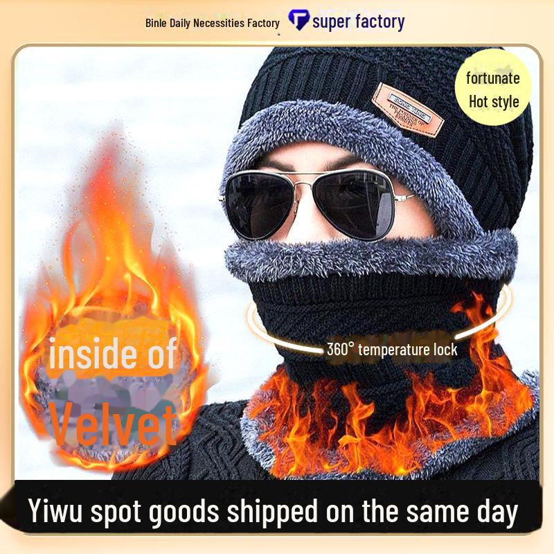 Треугольная вязаная шерстяная шапка для мужчин - на бархатной подкладке, утолщенная, теплая, морозостойкая, в корейском стиле, осенне-зимняя велосипедная кепка-пуловер