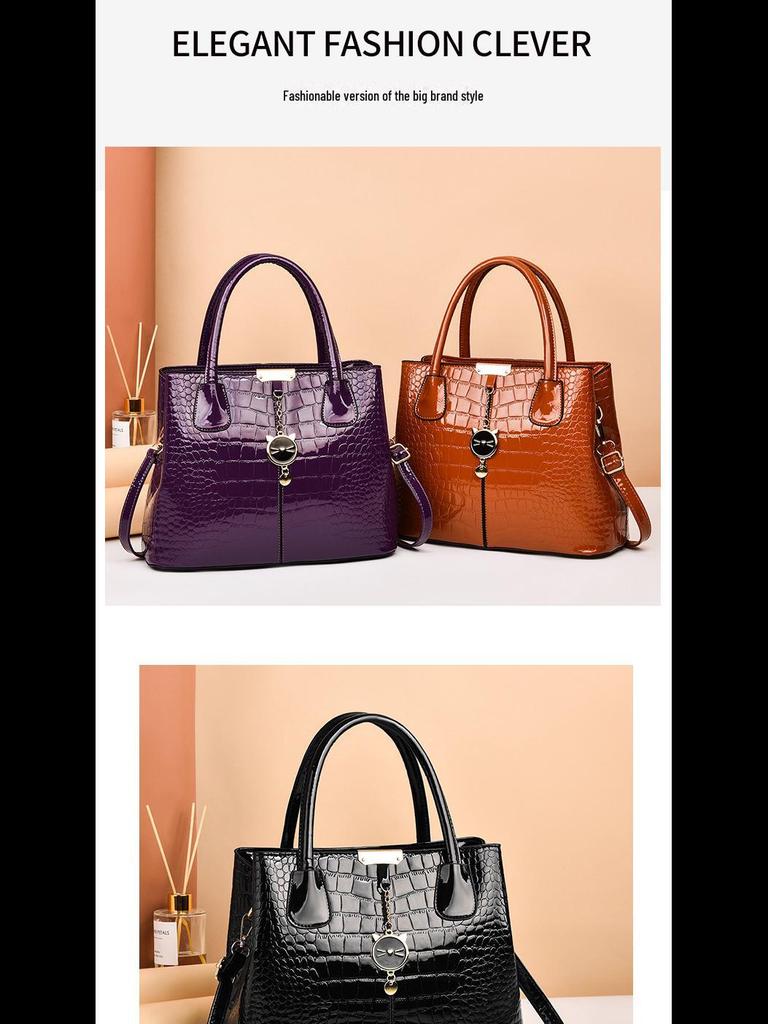 Сумка через плечо с каменным узором и большой вместимостью 2024 года - женская яркая кожаная сумка
