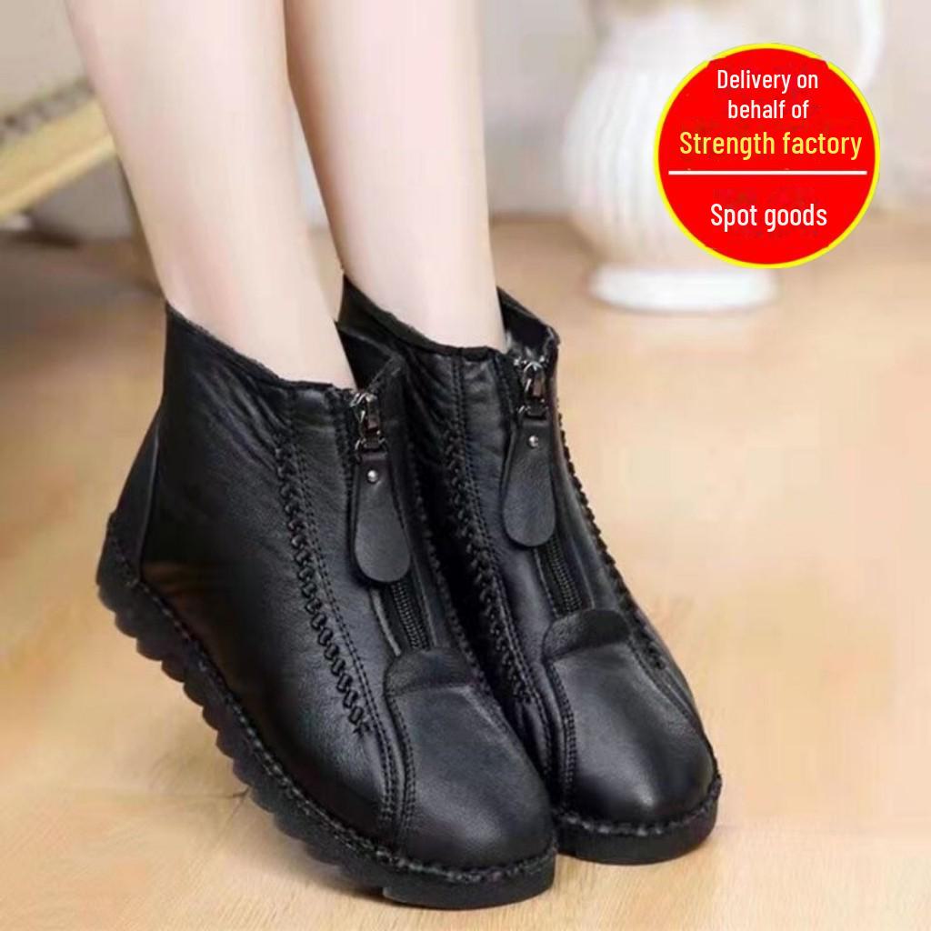 Теплая зимняя хлопковая обувь с бархатной подкладкой для людей среднего и пожилого возраста - противоскользящие зимние ботинки на плоской подошве 2024 г.