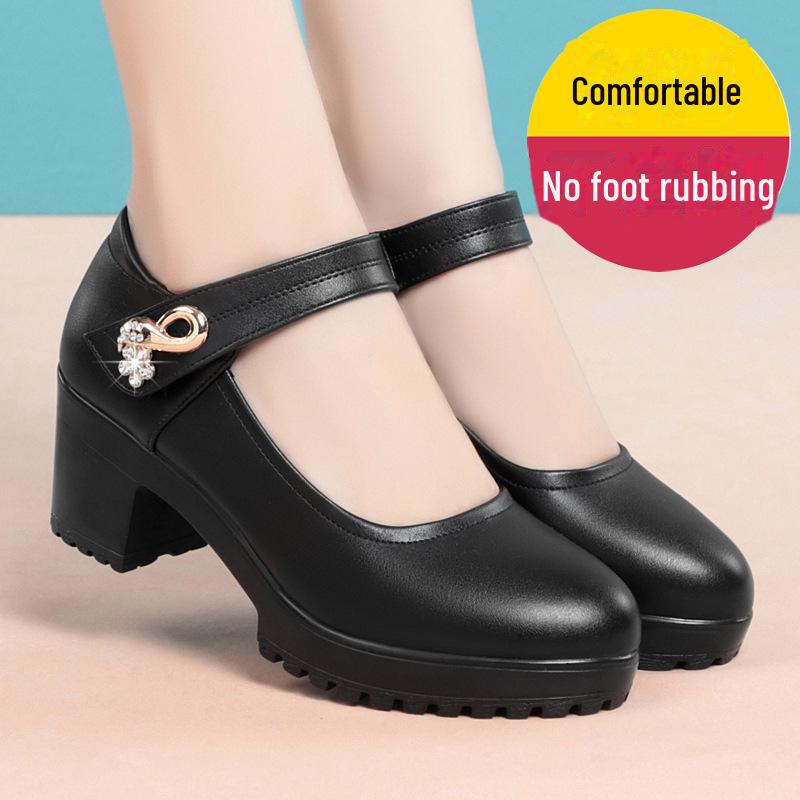 Кожаные танцевальные туфли для мамы: Весна и лето, универсальный чонсам, туфли на толстом каблуке с одной пряжкой